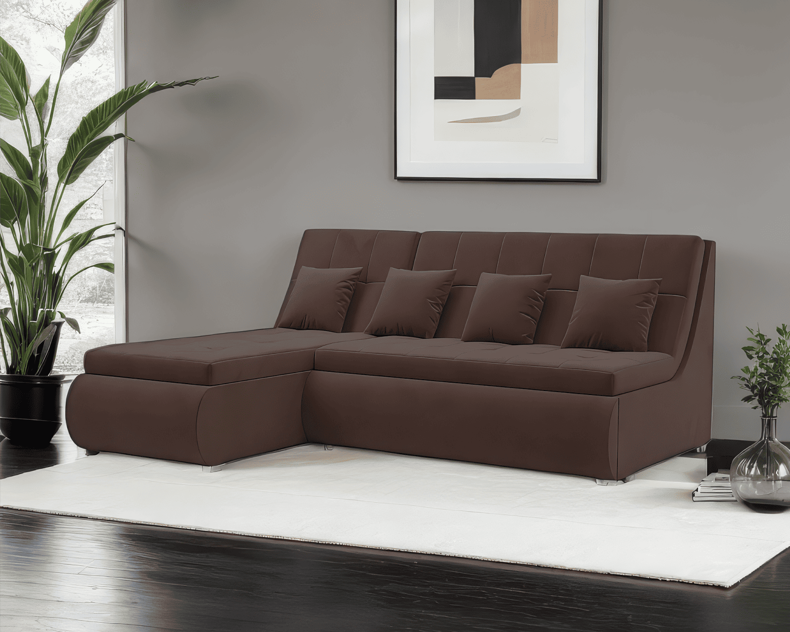 «Дубай» легко может изменить свою конфигурацию, чтобы адаптироваться под ваше пространство. Угловая конфигурация универсальна, поэтому вы можете разместить оттоманку с удобной стороны для вас.