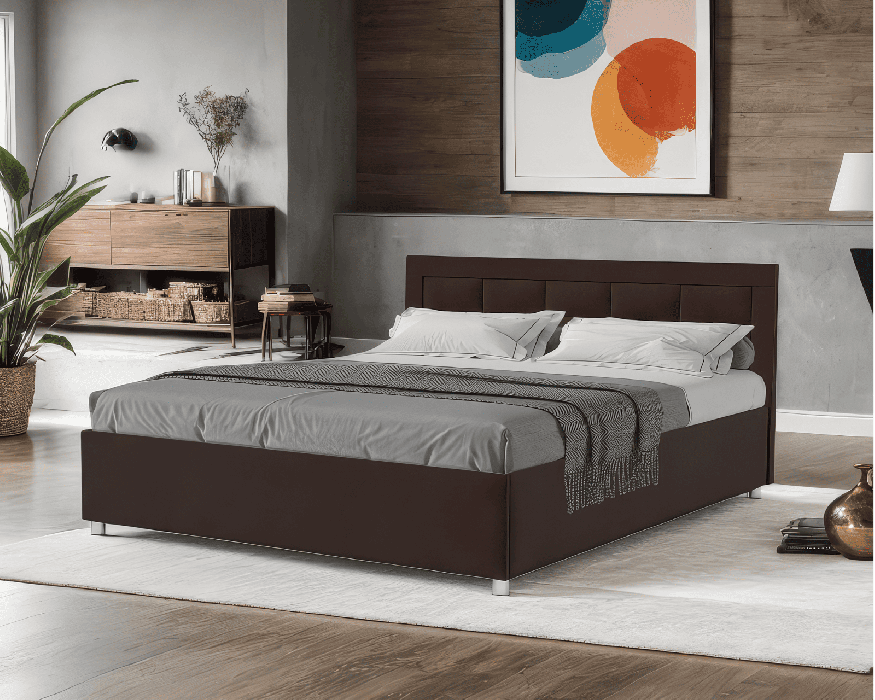 Кровать «Версаль» – представляет собой идеальное сочетание элегантности и минимализма, созданное в соответствии с современными тенденциями дизайна интерьера. Прямоугольное изголовье, украшенное линейной стежкой, является не только стилистическим акцентом, но и практичным элементом, добавляющим уюта в спальную зону.
