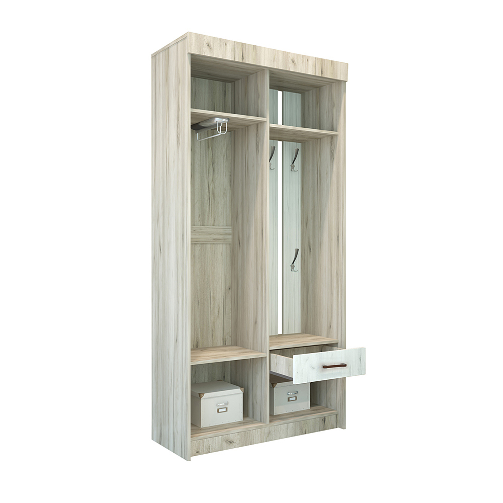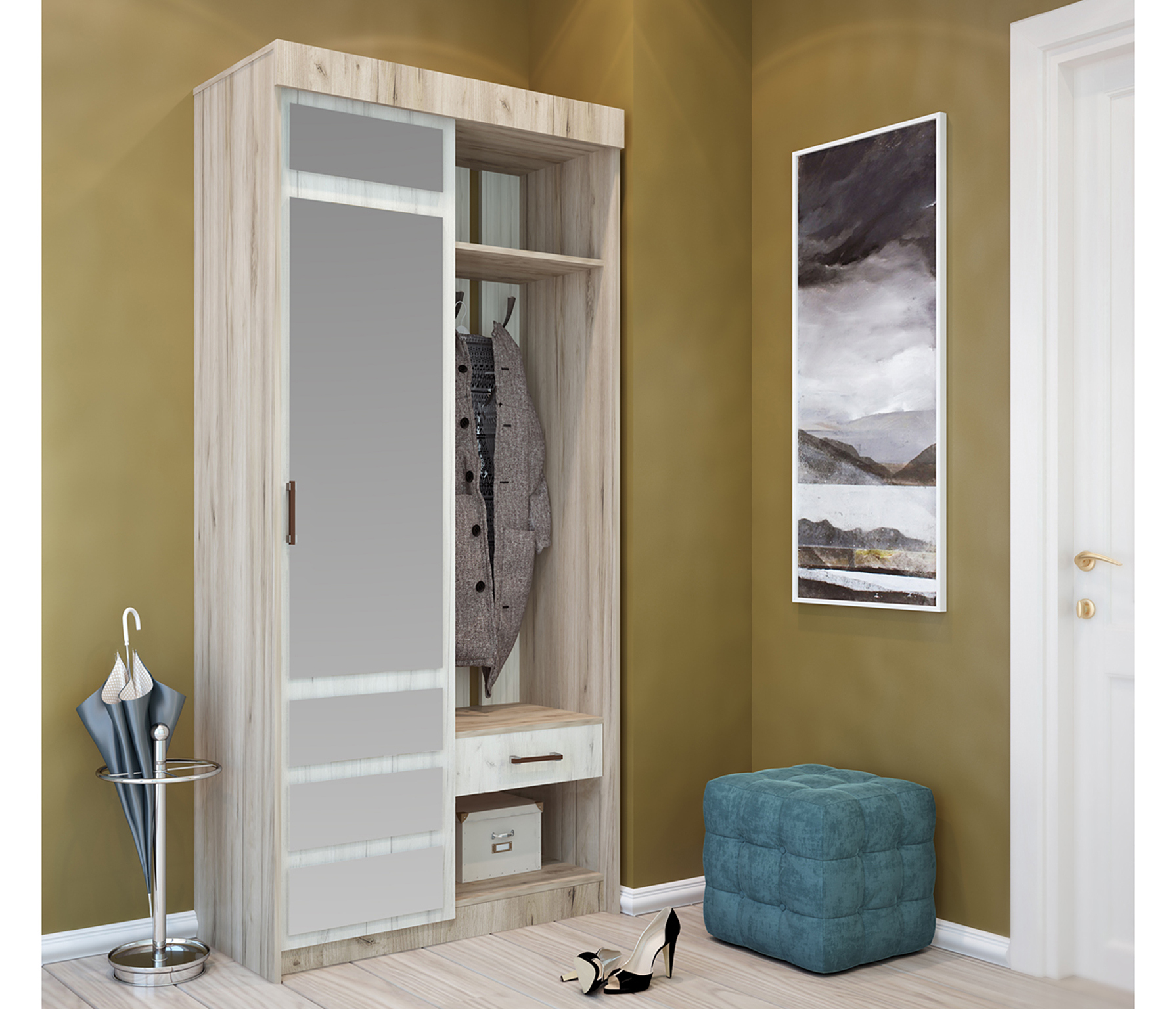 Прихожая универсальна. Она может собираться как в правом, так и в левом исполнении.