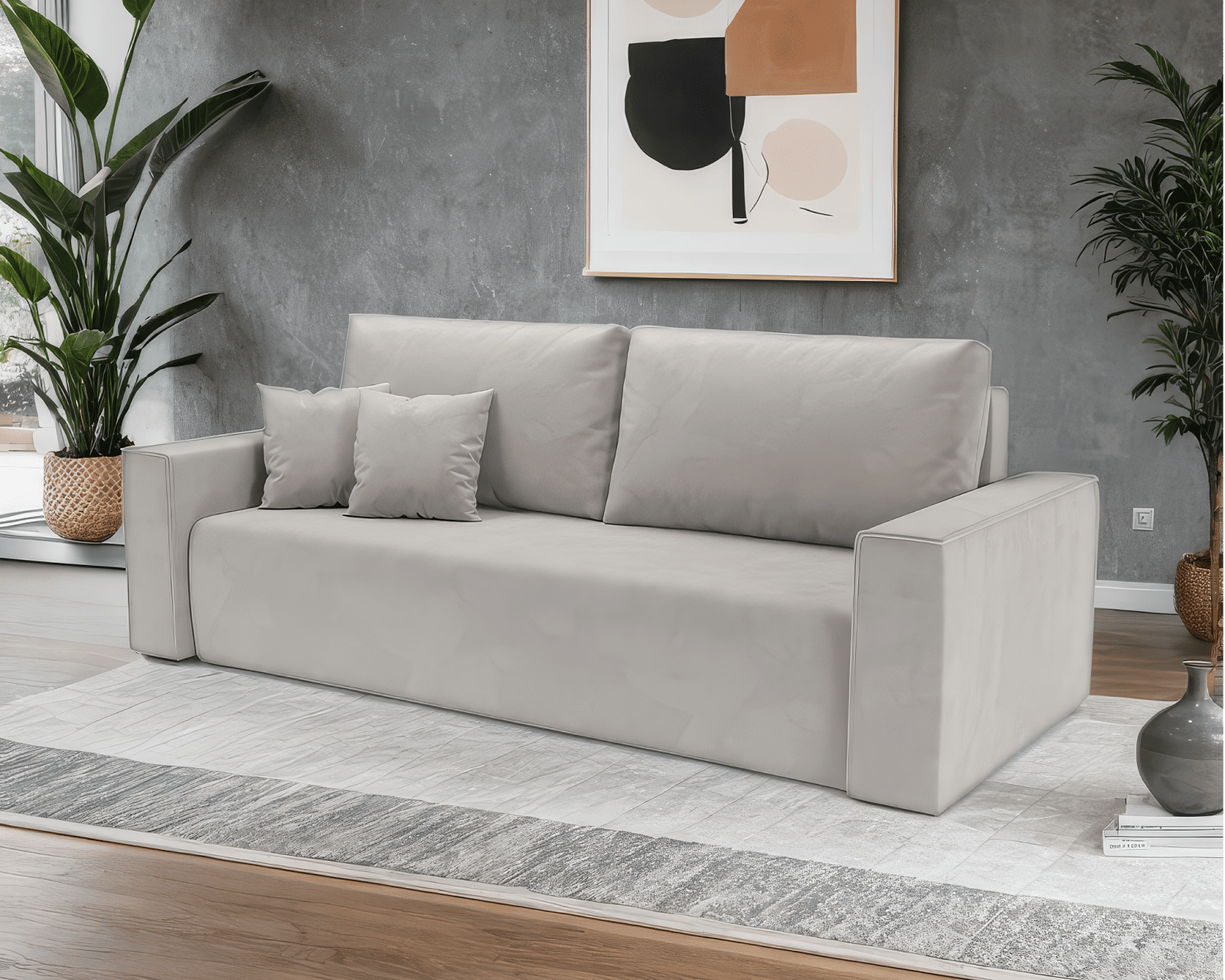 Диван «Манхэттен» имеет ящик для хранения постельных принадлежностей и личных вещей. Если вам нужно больше свободного пространства, вы можете спрятать спинки и декоративные подушки в ящике.