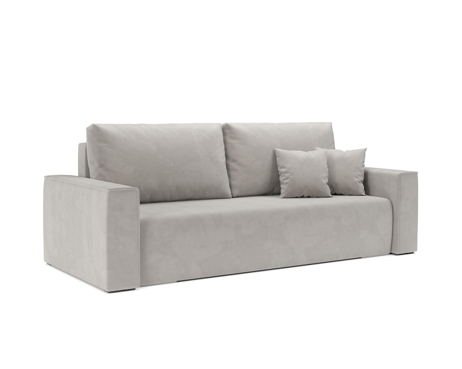 Популярный механизм трансформации "еврокнижка" позволяет плотно прижимать диван к стене и сохранять его неподвижность при раскладывании и складывании. В разложенном виде прямой диван "Манхэттен" превращается в спальное место размером 1500x2000 мм.