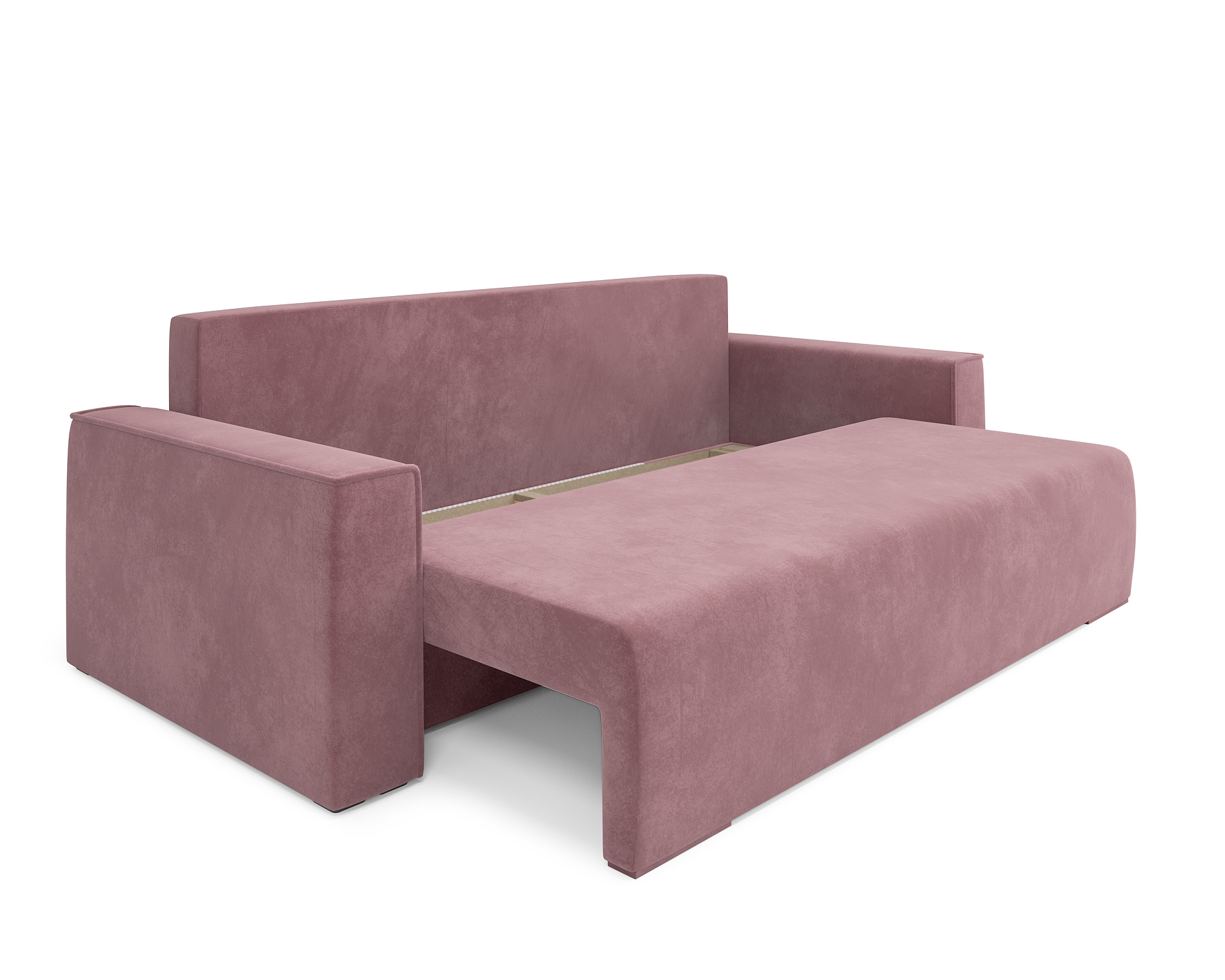 Популярный механизм трансформации "еврокнижка" позволяет плотно прижимать диван к стене и сохранять его неподвижность при раскладывании и складывании. В разложенном виде прямой диван "Манхэттен" превращается в спальное место размером 1500x2000 мм.