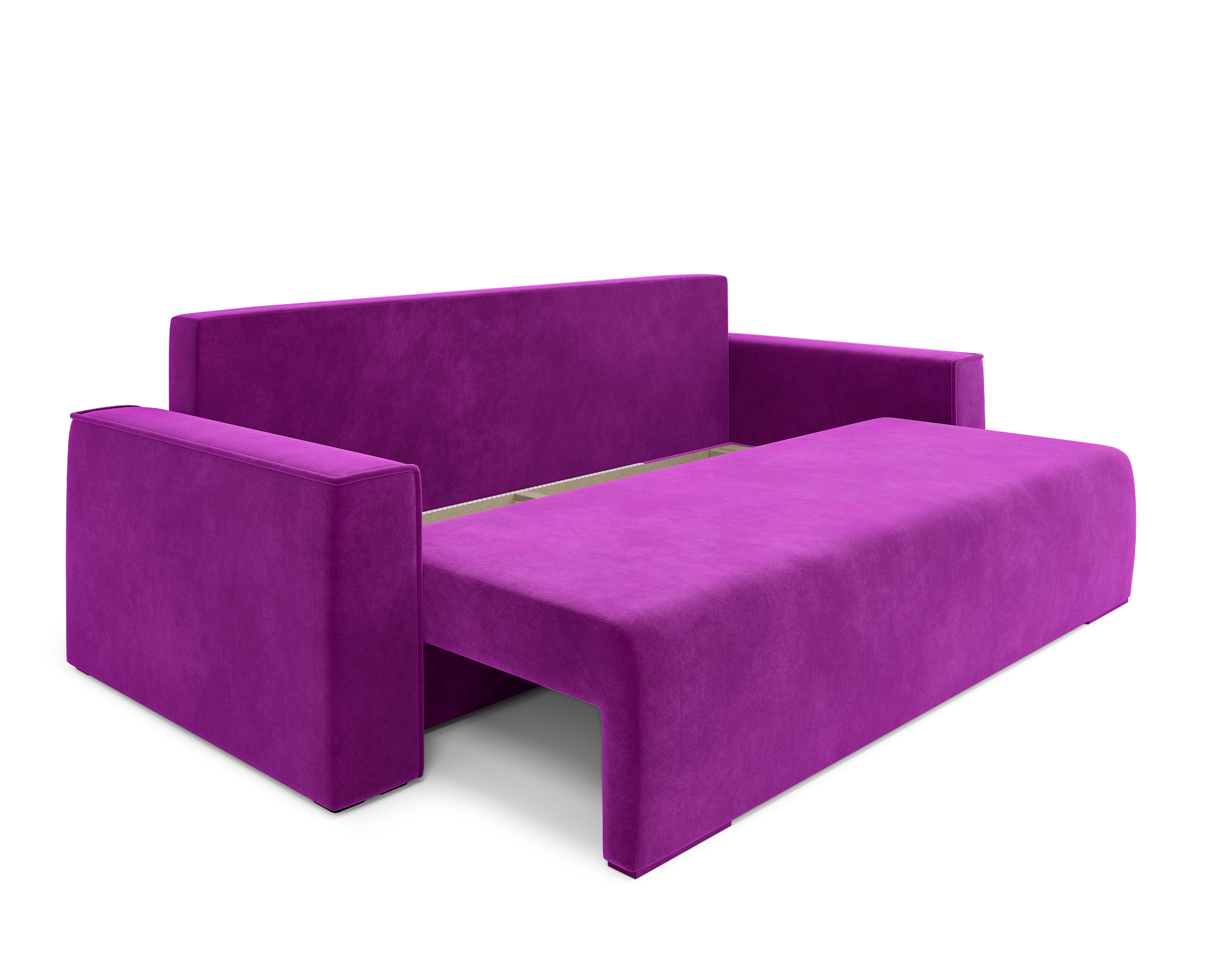 Популярный механизм трансформации "еврокнижка" позволяет плотно прижимать диван к стене и сохранять его неподвижность при раскладывании и складывании. В разложенном виде прямой диван "Манхэттен" превращается в спальное место размером 1500x2000 мм.
