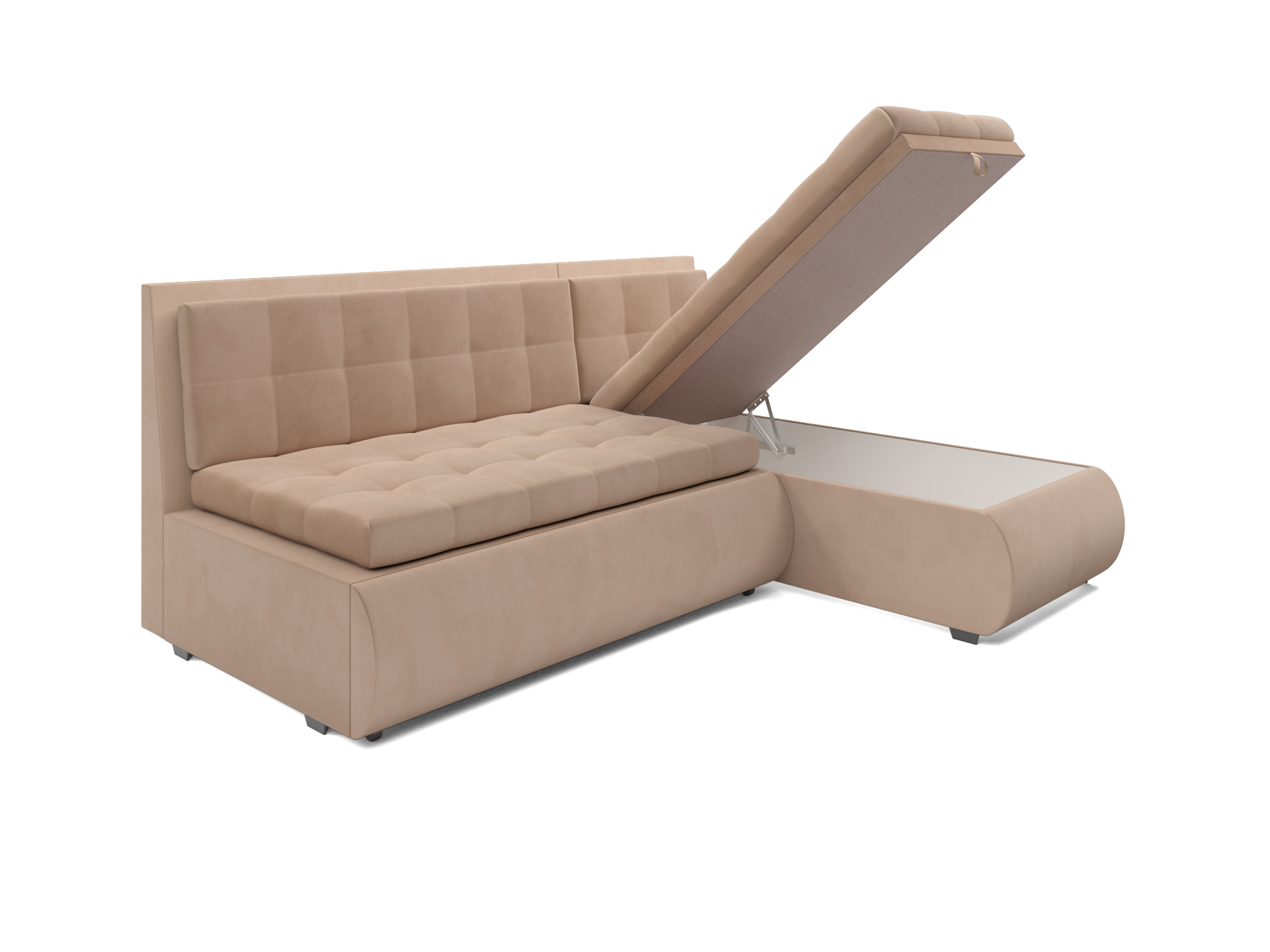 Удобство использования дивана «Кормак» дополняется ящиком для хранения, который расположен внутри угловой части. В него можно положить небольшие вещи или постельные принадлежности, сохраняя порядок и экономя пространство.