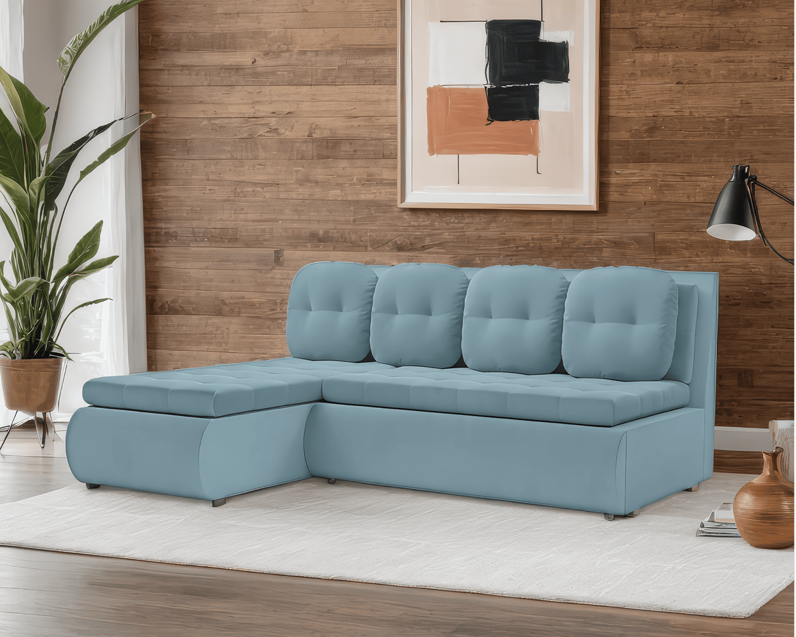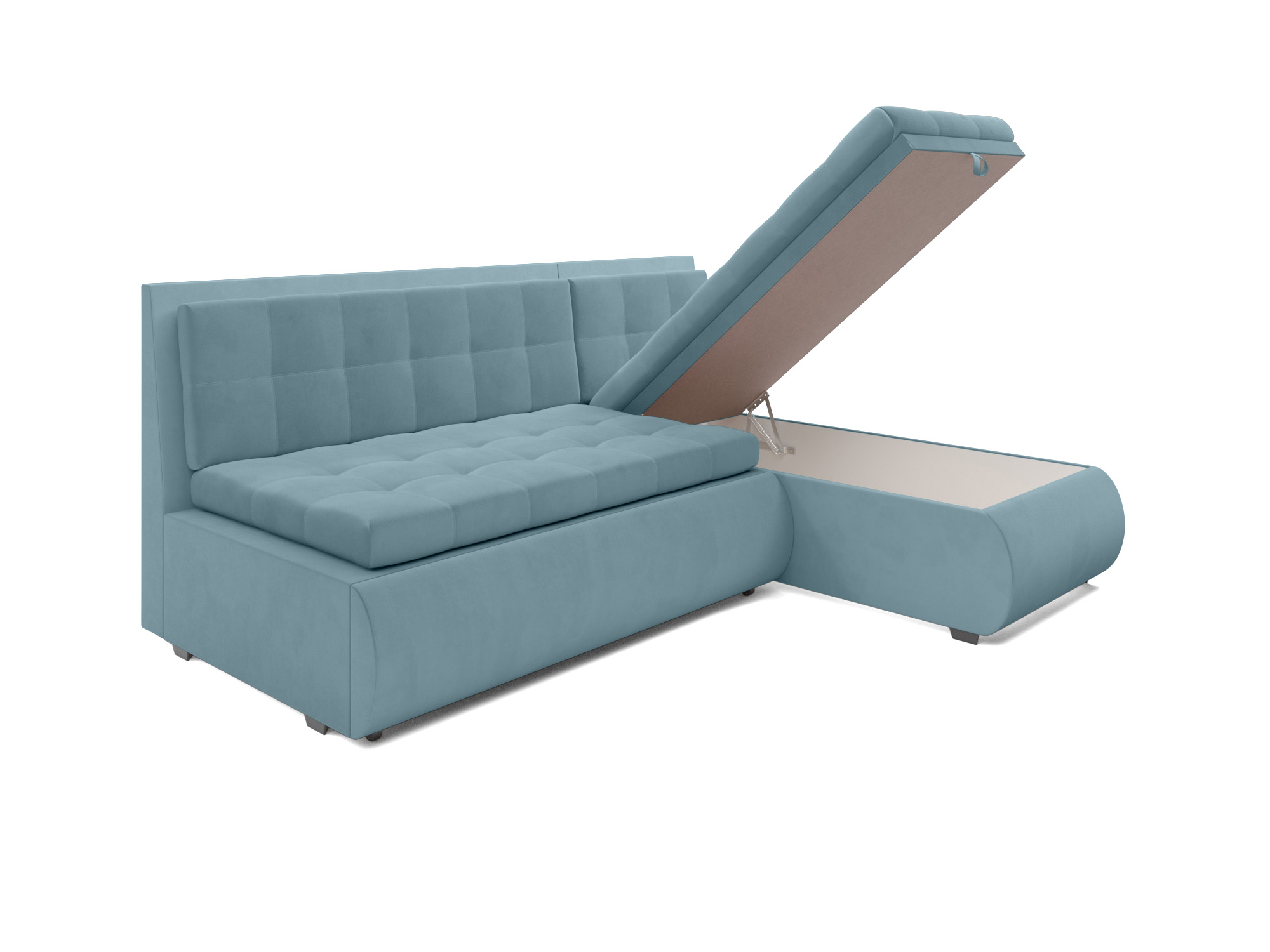 Удобство использования дивана «Кормак» дополняется ящиком для хранения, который расположен внутри угловой части. В него можно положить небольшие вещи или постельные принадлежности, сохраняя порядок и экономя пространство.