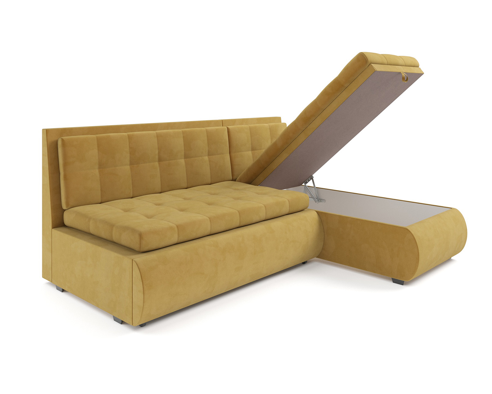 Удобство использования дивана «Кормак» дополняется ящиком для хранения, который расположен внутри угловой части. В него можно положить небольшие вещи или постельные принадлежности, сохраняя порядок и экономя пространство.
