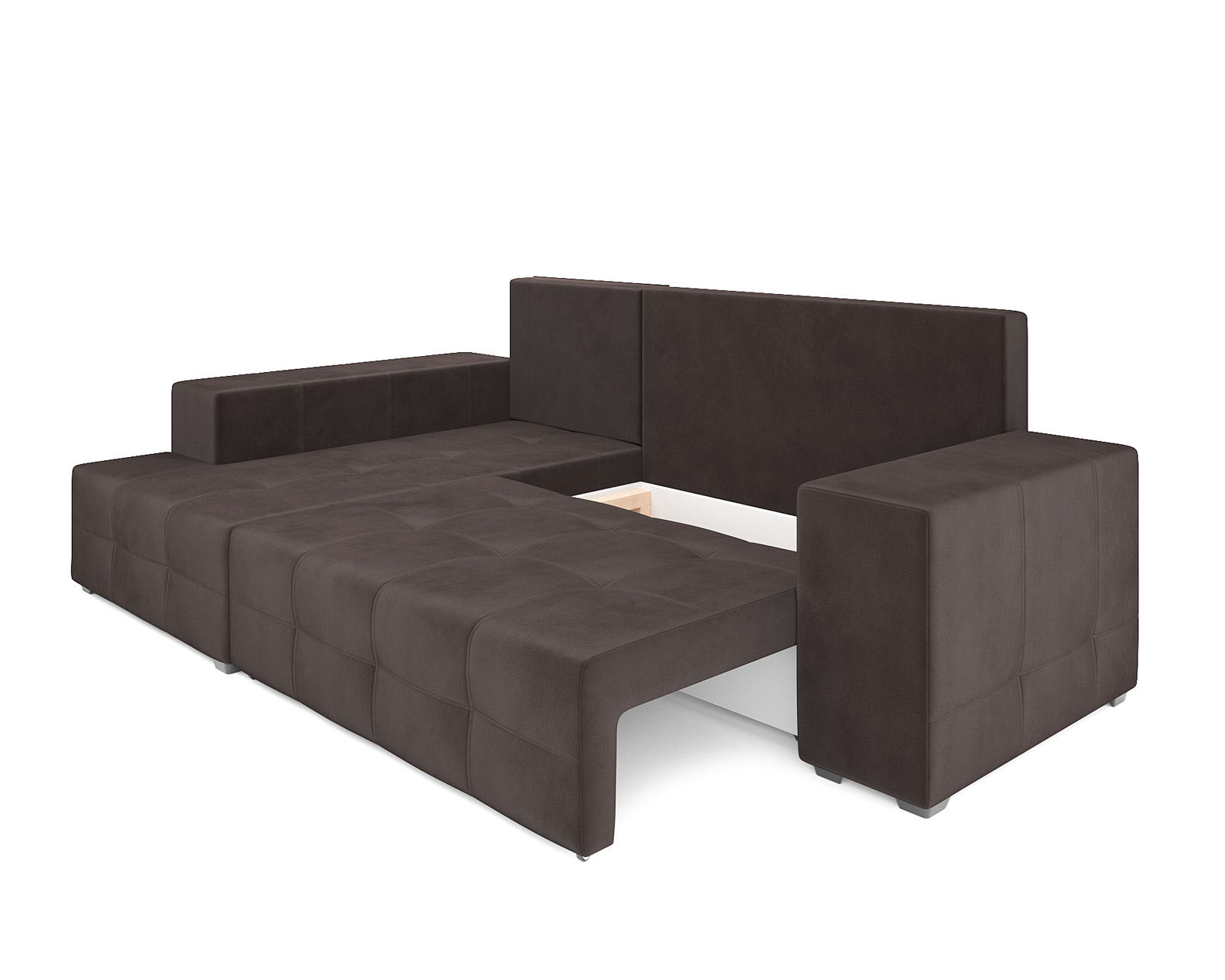 Конструкция углового дивана «Монреаль» легко преобразуется в полноценную кровать. Просто выдвиньте сиденье вперед и опустите спинку. Механизм еврокнижка позволит вам сэкономить место, а при раскладке образует полноценное спальное место на двоих размером 161х201 см