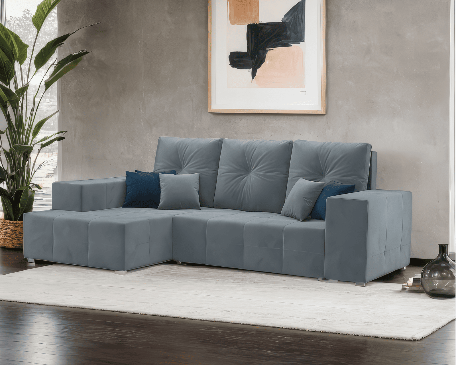 Удобство использования дивана «Монреаль» дополняется ящиком для хранения, который расположен внутри угловой части. В него можно положить небольшие вещи или постельные принадлежности, сохраняя порядок и экономя пространство.