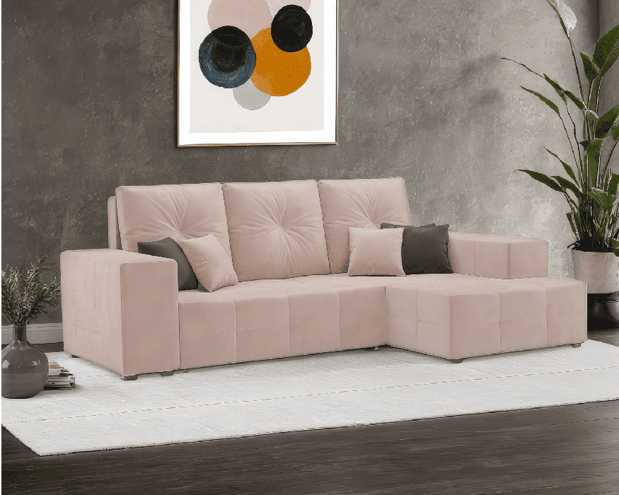 Конструкция углового дивана «Монреаль» легко преобразуется в полноценную кровать. Просто выдвиньте сиденье вперед и опустите спинку. Механизм еврокнижка позволит вам сэкономить место, а при раскладке образует полноценное спальное место на двоих размером 161х201 см