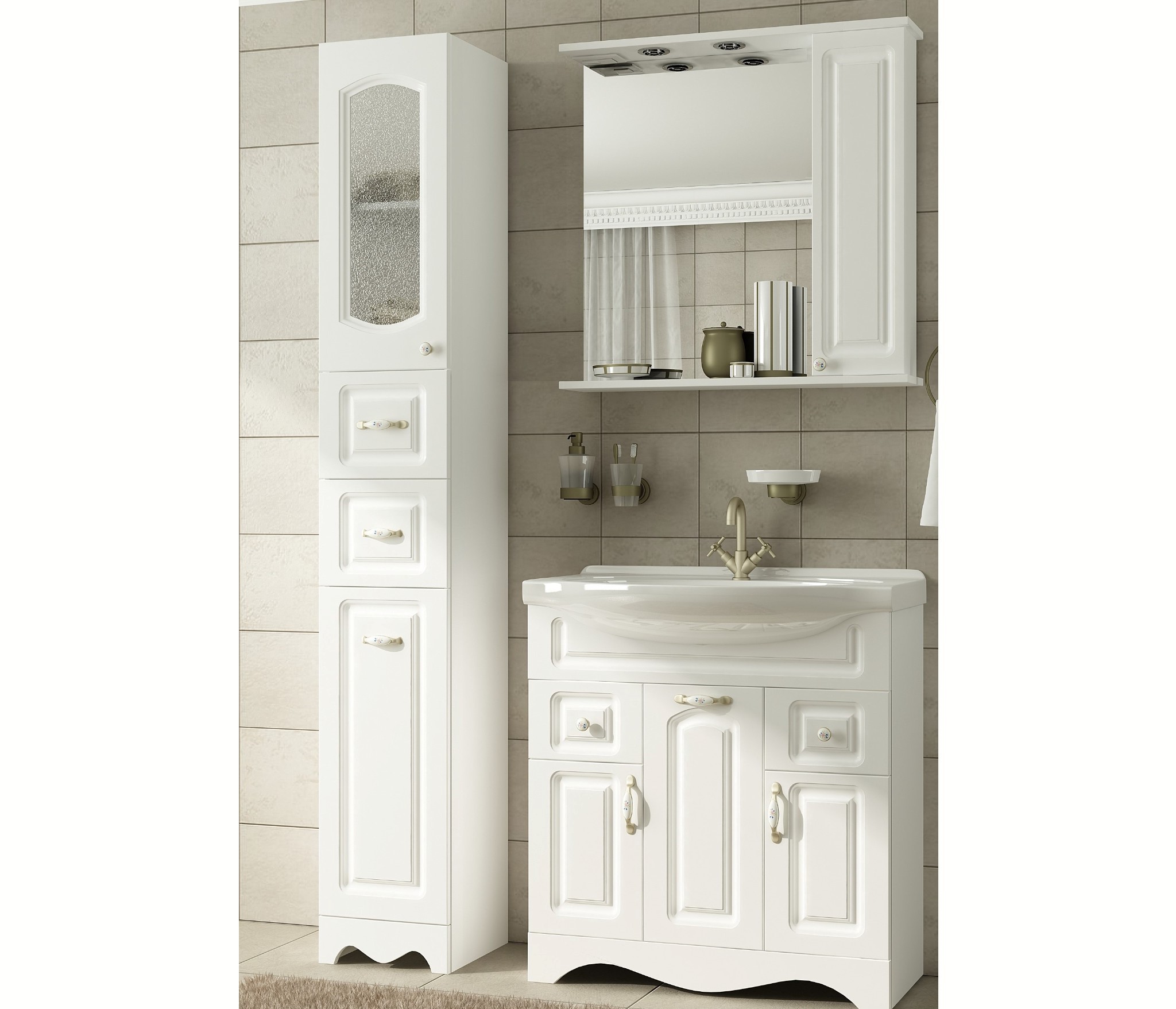 Шкаф-зеркало Francesca Avanti Империя 80 органично дополнит классический интерьер. Мебель из ДСП и МДФ покрыта влагостойкой пленкой, защищающей древесину от влаги. Кромки мебели герметично обработана, что предотвращает попадание влаги внутрь древесных волокон. На выбор покупателя доступно два варианта расположения шкафчика: слева или справа от зеркала. Дополнительно конструкция включает: