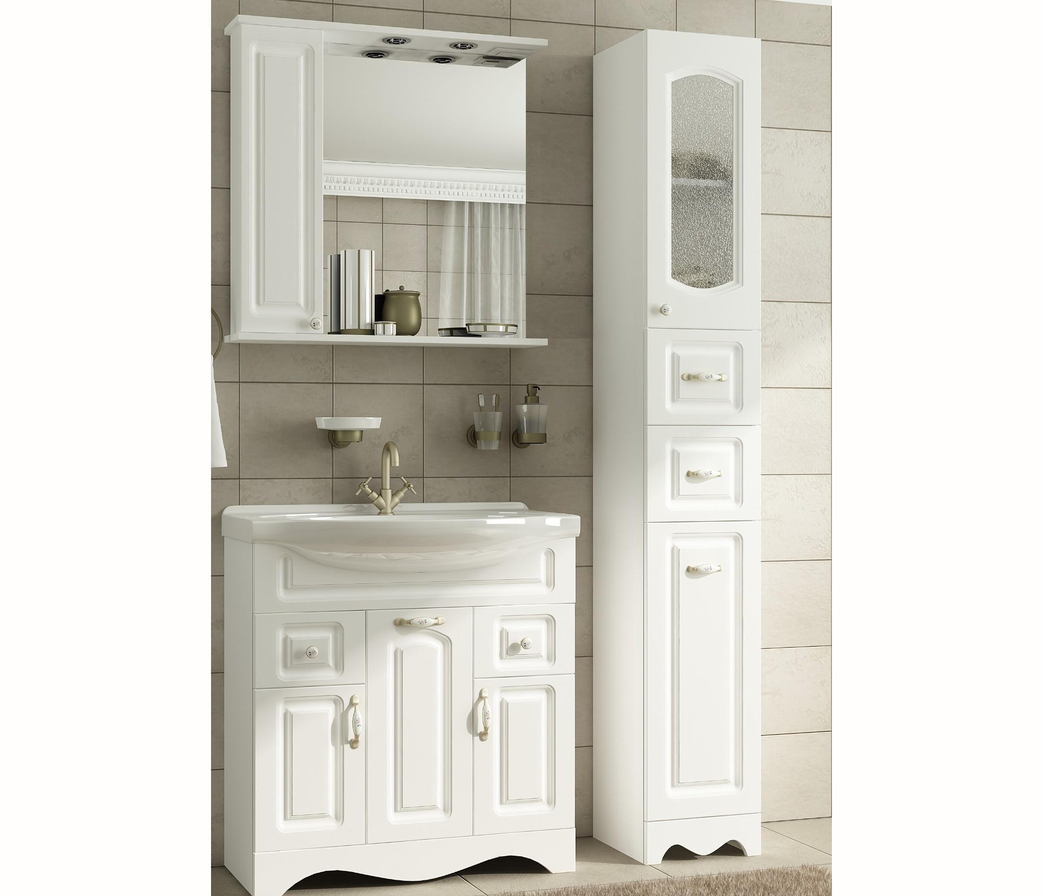 Шкаф-зеркало Francesca Avanti Империя 80 органично дополнит классический интерьер. Мебель из ДСП и МДФ покрыта влагостойкой пленкой, защищающей древесину от влаги. Кромки мебели герметично обработана, что предотвращает попадание влаги внутрь древесных волокон. На выбор покупателя доступно два варианта расположения шкафчика: слева или справа от зеркала. Дополнительно конструкция включает: