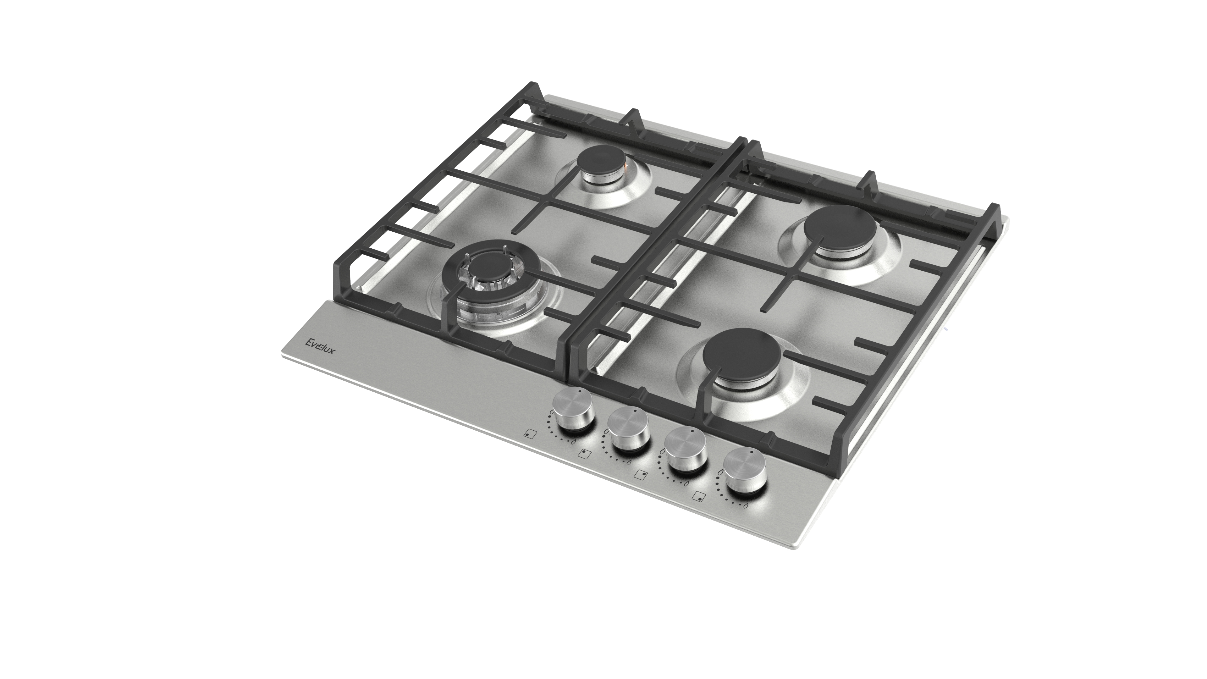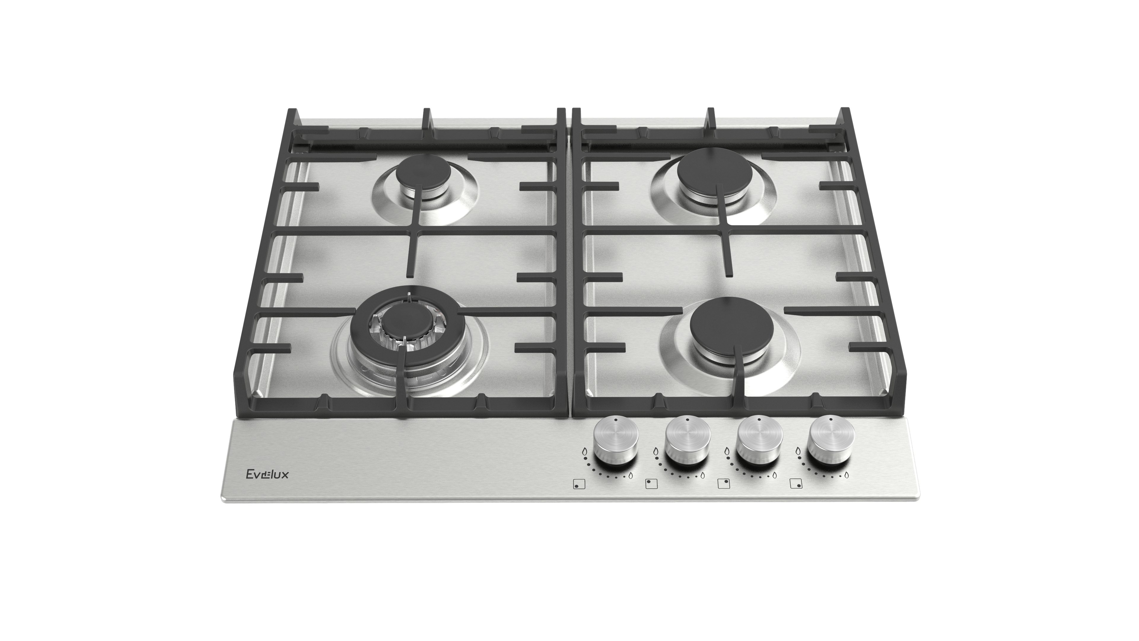 Поворотные регуляторы газовых варочных поверхностей Evelux выполнены из металла, что создает профессиональный стиль и препятствует их перегреву.