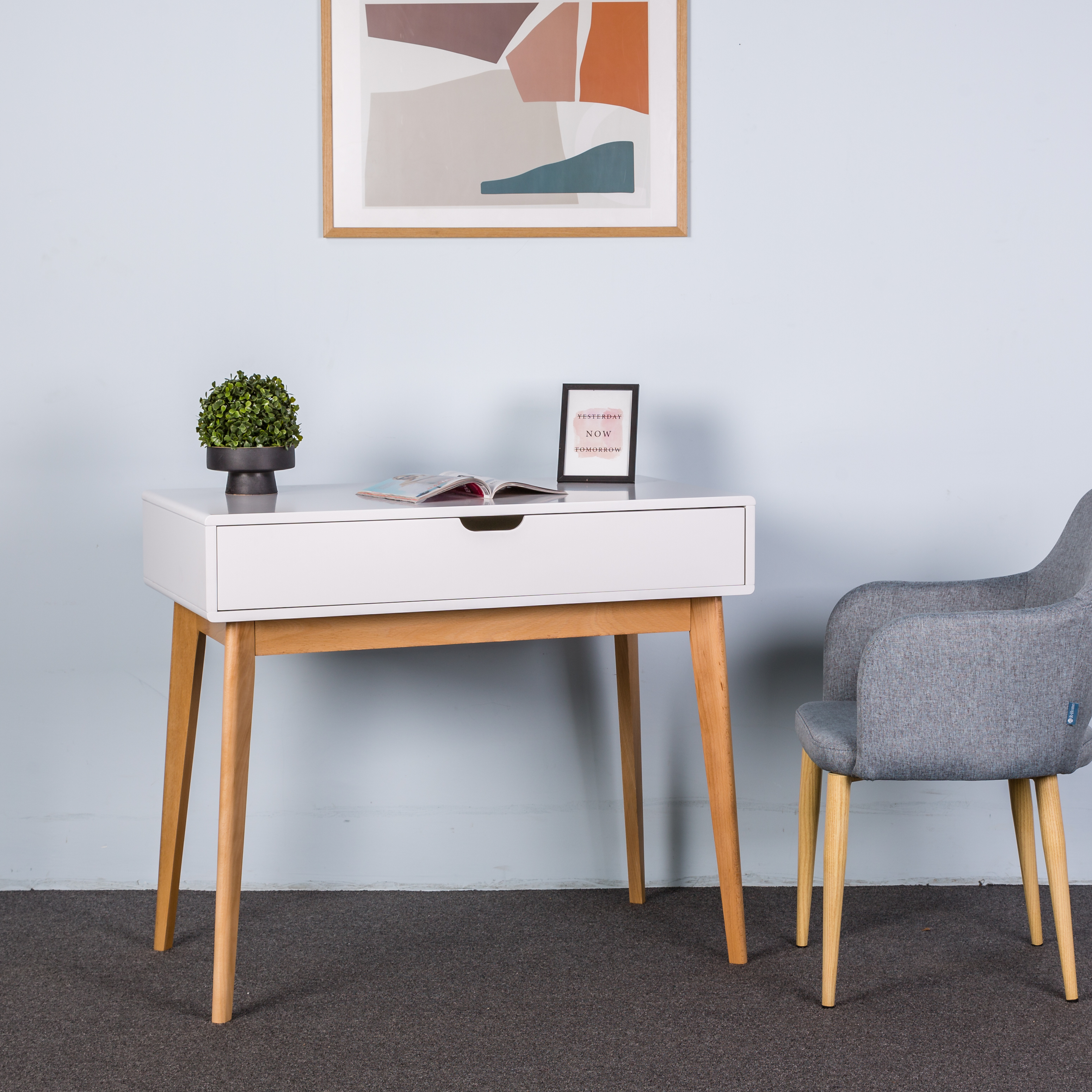 Стол письменный Nikko станет украшением вашего дома. Ножки столика выполнены из массива натурального дерева. Столешница, износостойкая, выполнена из ЛДСП в белом цвете.