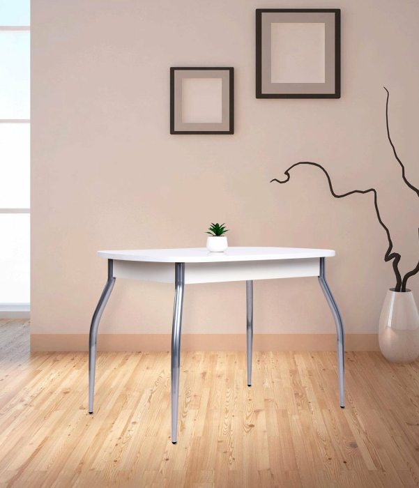 Столешница стола Лидер изготовлена из высококачественного слоистого пластика цвет Белый глянецй.Подстолье из ЛДСП.Размер стола: Ш*В*Г: 110*70*75 в сложенном виде и 70*142*75 в разложенном виде .Механизм разложения тип Бабочка.Вставка размером 30 см. так же из пластика.Опоры стола изогнутые Хром.Удачный дизайн,позволит разместить стол на кухне или гостиной с любой цветовой гаммой.
