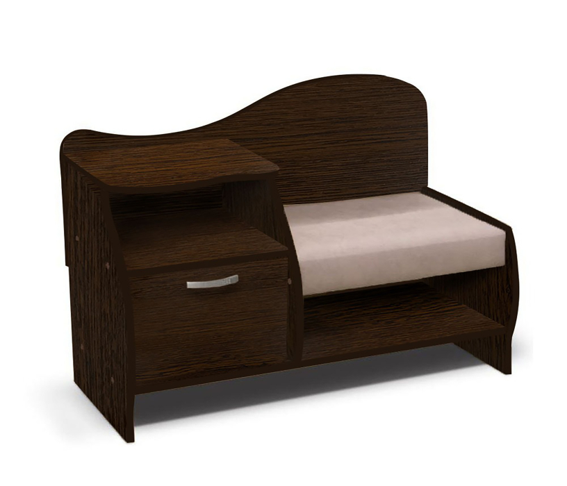 Тумба для обуви комплектуется открытой и закрытой полкой с дверцей и местом для сидения со спинкой.