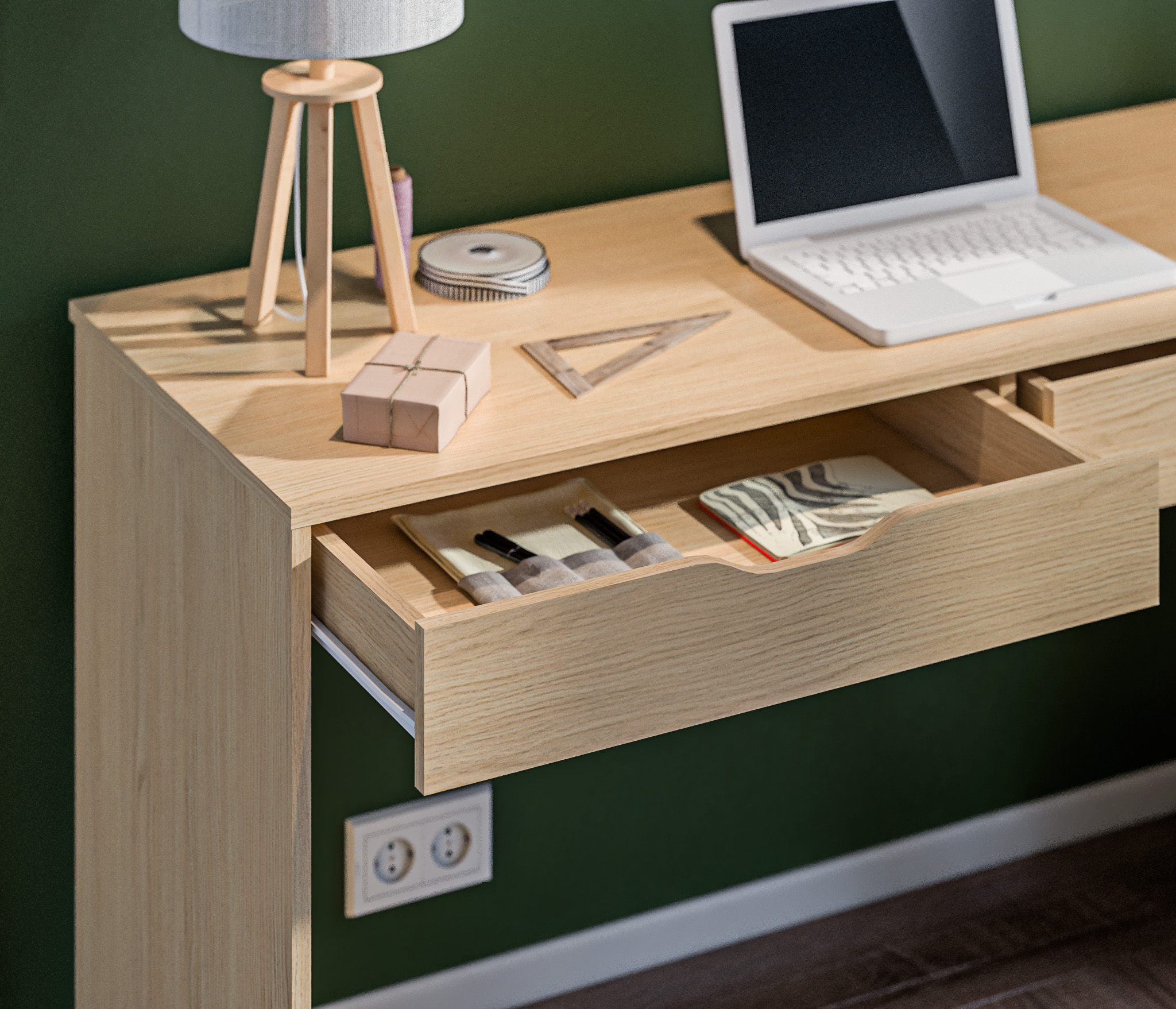 Минималистичный декор, отсутствие ручек и нейтральный цвет стола позволят разместить его в любой интерьер. Также вы можете дополнить письменный стол Бруклин комодами одноименной коллекции.
