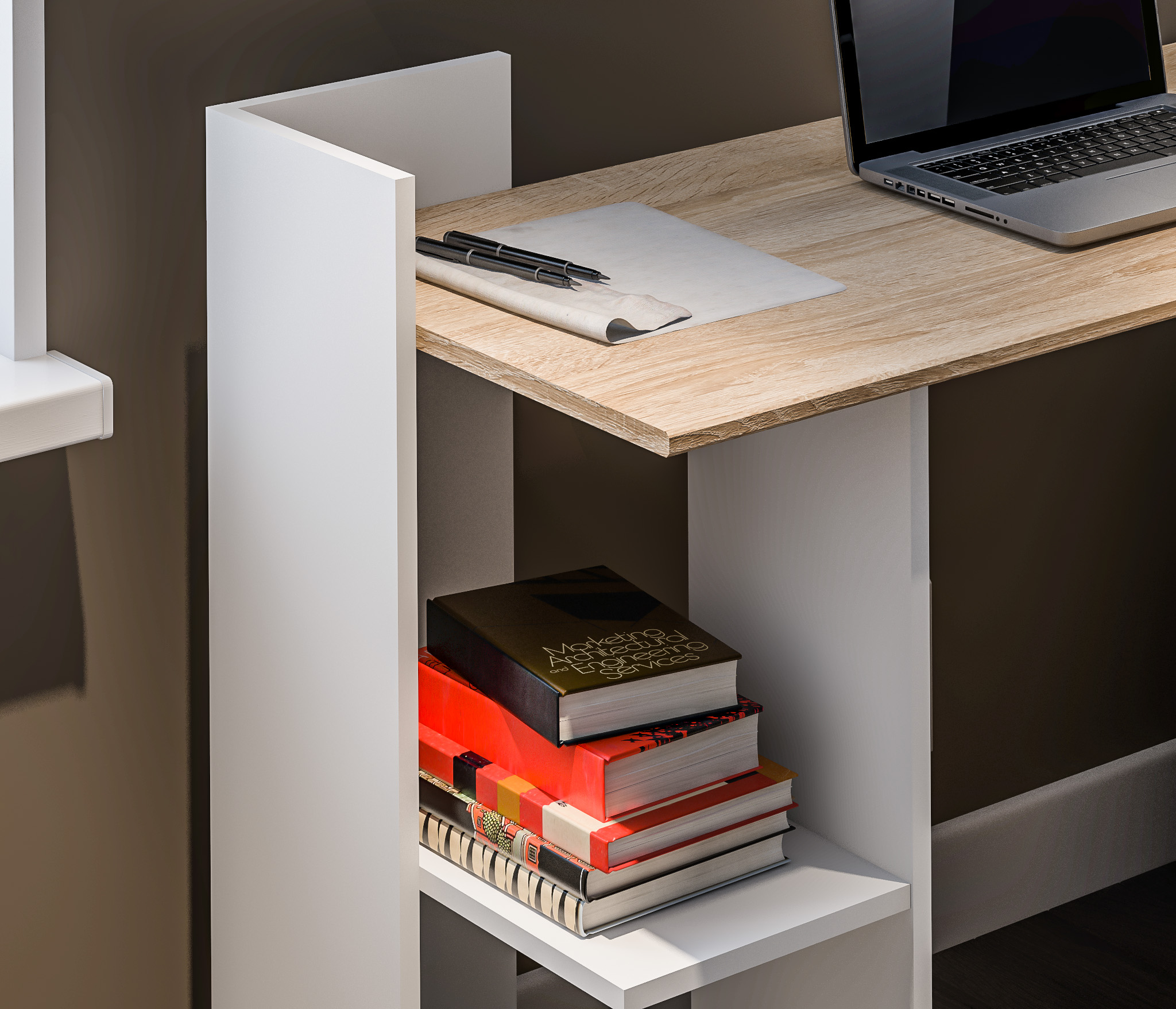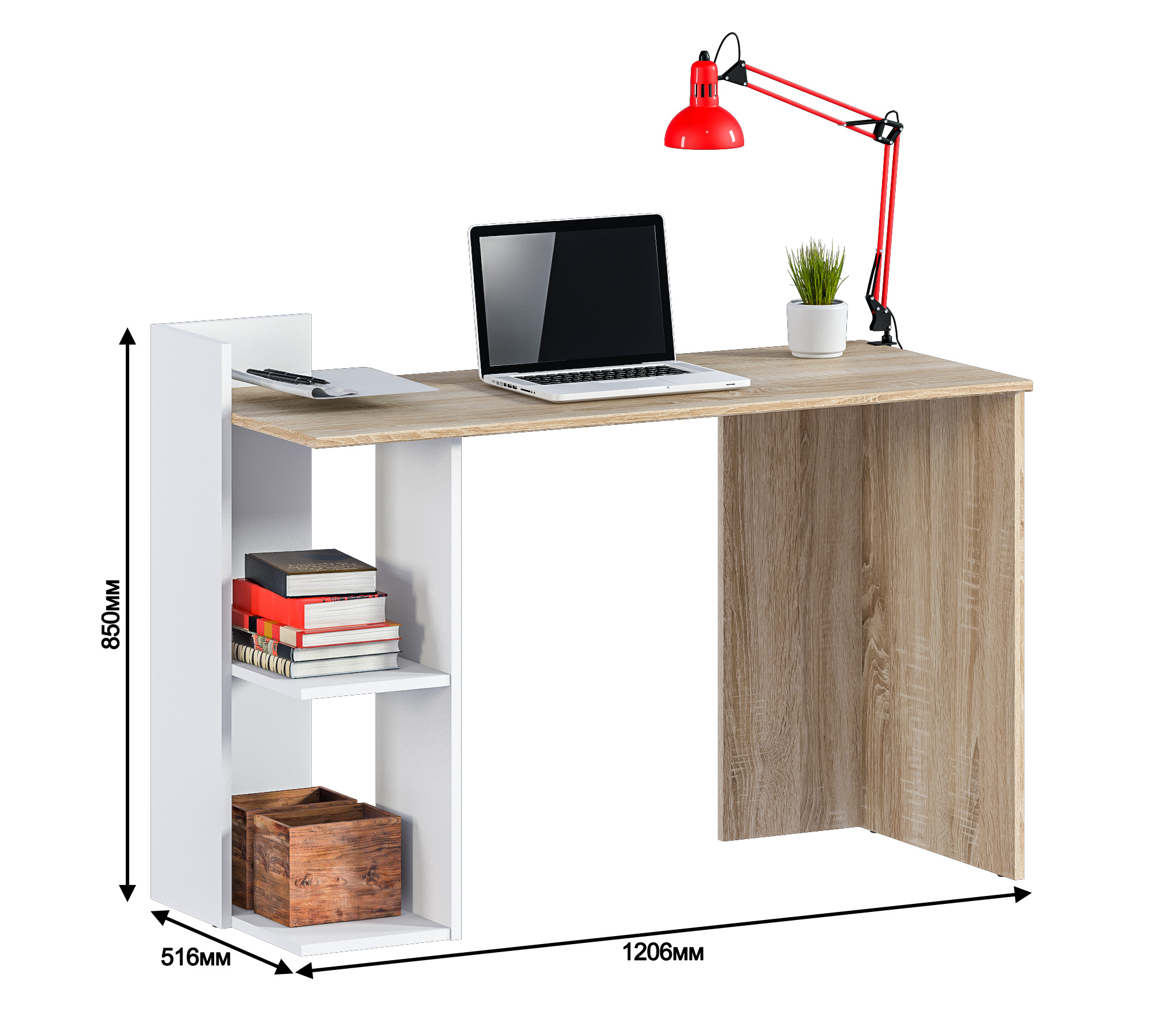 Стол Мамбо СБ-3340 – компактное и комфортное рабочее место. Такой стол не займет много места в комнате студента или школьника, а также будет органично смотреться в кабинете или офисе. Габаритные размеры стола Медея – ширина 120 см, высота 85 см и глубина 51 см. Под рабочей поверхностью расположена одна открытая тумба с двумя вместительными полками. Произведен стол из экологичного современного КДСП. Цвет отделки комбинированный: столешница в цвете "Дуб Сонома", а тумба в белом цвете. Лаконичный дизайн, компактные размеры создают ощущение легкости, и стол не выглядит громоздким. Стол Мамбо может быть стилизован в гарнитуре.