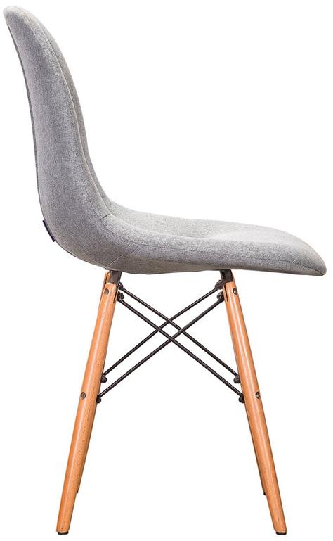 Стул «Eames» с мягким сиденьем — это современная реплика дизайнерских стульев Eames, ставших популярными ещё в середине прошлого века. Стильный предмет мебели отличное решение для уютной городской квартиры. Удобная и легкая модель станет украшением гостиной, столовой или детской. Оригинальный и лаконичный дизайн легко впишется в любой интерьер и быстро станет самым любимым местом каждого члена семьи. Ножки стула Eames W выполнены из массива бука. Твердая и прочная порода имеет яркий фактурный рисунок. В коллекции представлены модели со светлой и темной тонировкой древесины. Ножки имеют наклон для большей устойчивости конструкции. Мягкое сиденье обтянуто плотным текстильным материалом. Ткань с особой структурой легко очищается от загрязнений и вызывает приятные ощущения в прикосновении. Особая форма стула повторяет контур тела, обеспечивая комфортное положение для сидящего. Упругий набивочный материал зафиксирован декоративными пуговицами в цвете основной ткани. Сиденье не проседает и не деформируется после долгой эксплуатации. Дизайнерские стулья голубого, коричневого и серого цветов гармонично сочетаются с окружающей мебелью и другими предметами интерьера.