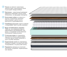 Ортопена и кокосовая койра в составе комфортного слоя дают высокий анатомический эффект. Ортопена – эластичный материал, который принимает форму, идеально повторяющую контур тела. Кокосовая койра обеспечивает матрасу целостность, жесткость и долговечность.