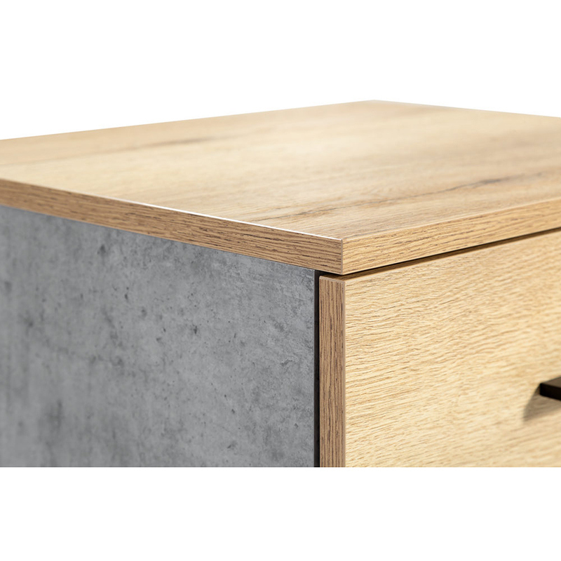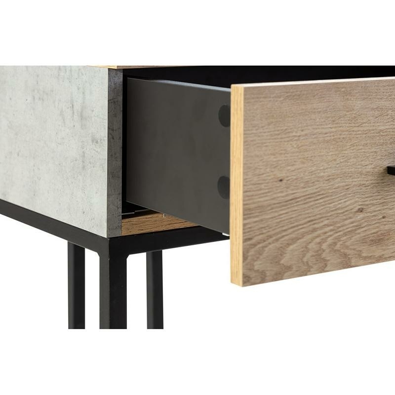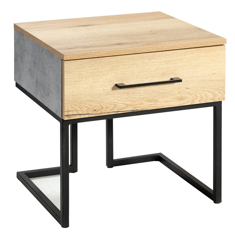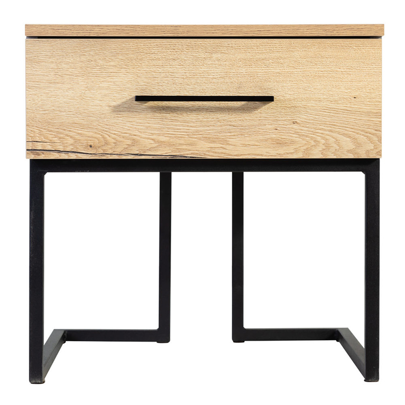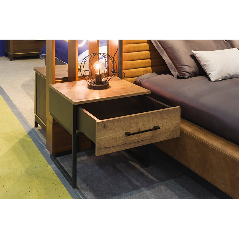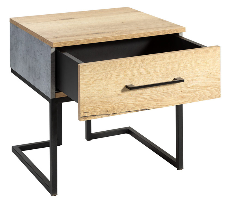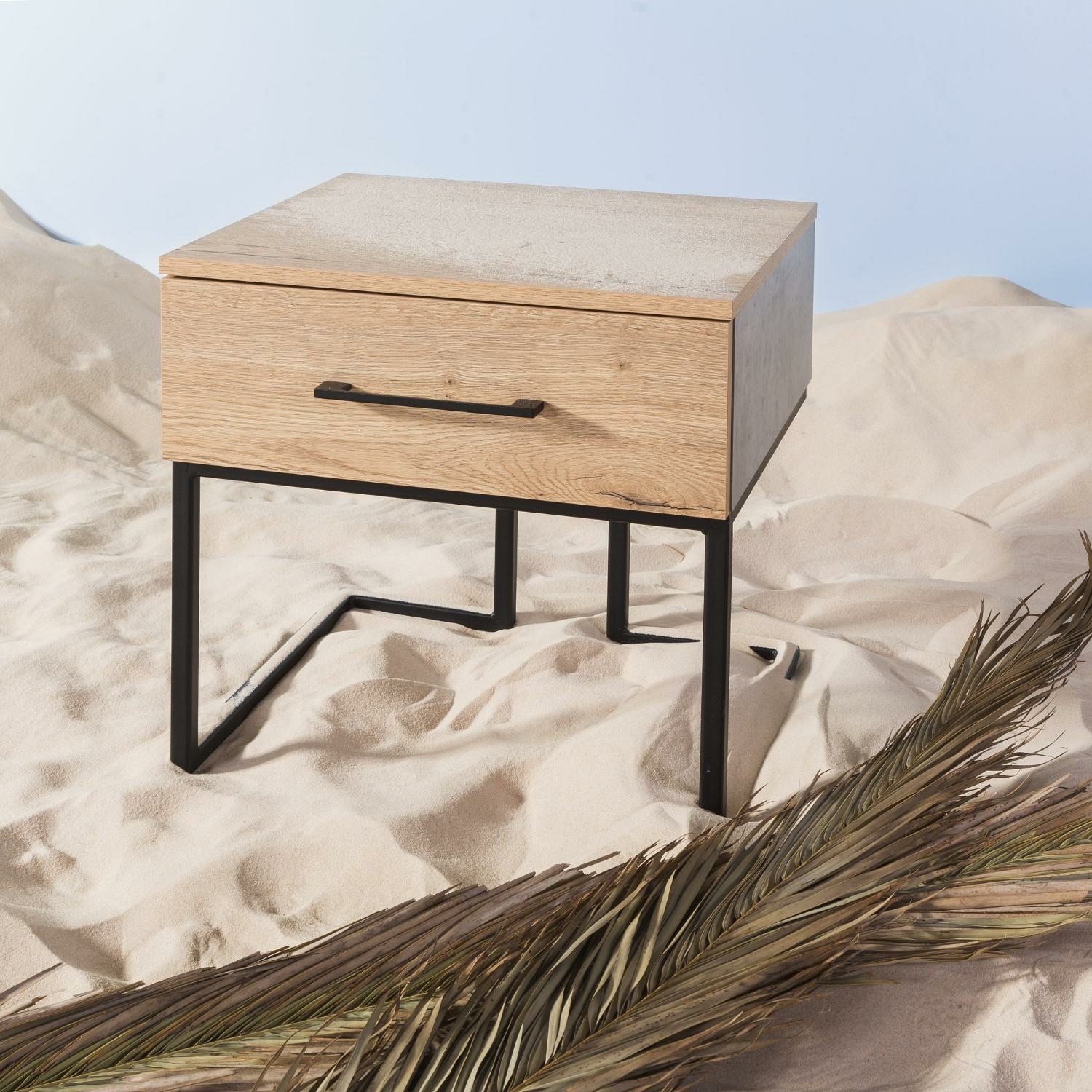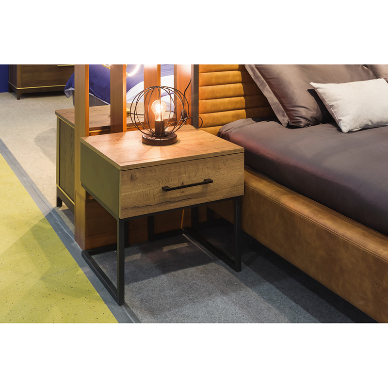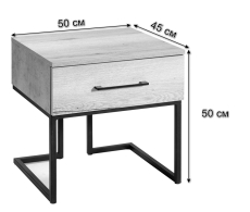 Сочетание, казалось бы несочетаемого – теплые древесные декоры в противоположность матовому металлу, вот в этом современность стиля Loft. Комплектация прикроватной тумбы включает в себя один большой выдвижной ящик.