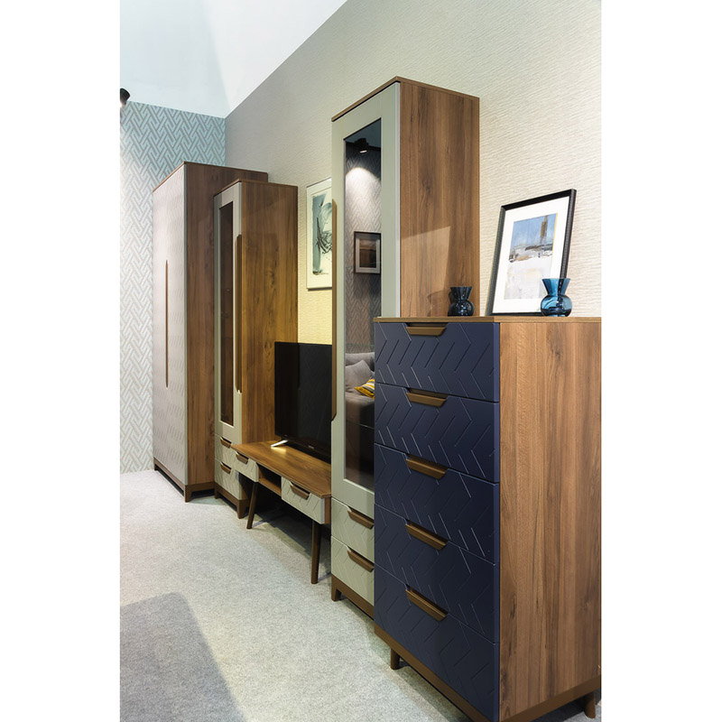 В интерьере невероятно свежо смотрятся деревянные облегченные стеклянными вставками шкафы витрины, визуально разгружая пространство, они смотрятся легче и воздушнее, чем традиционные закрытые шкафы, не загромождают пространство. Их преимущество – ультрасовременная эстетика и максимально эффективное использование пространства.