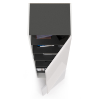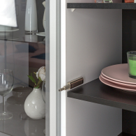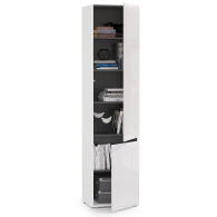 Шкаф конструктивно разделён на два отделения за распашными дверками - верхнее и нижнее. За распашной дверкой верхнего отделения располагаются три полки, за дверкой нижнего - одна. Лаконичные белые глянцевые фасады из МДФ 16 мм создают ощущение чистоты и свежести, лёгкости, свободного пространства. Акцентом выступают чёрные горизонтальные вставки между фасадами. Фасады могут открываться за край, либо нажатием, с помощью механизма Push-to-Open, позволяющий отказаться от использования ручек. Фасады оснащены доводчиками, что обеспечивает плавное закрывание и исключает удар о корпус. Универсальная сборка - сторону открывания дверей, Вы определяете при сборке. Мебель выполнена из прочной ламинированной ДСП 16 мм, торцы деталей закромлены плёнкой ПВХ 0,4-2 мм. Фасады выполнены из МДФ 16 мм белый глянец. Поставляется шкаф Сидней 13.200 в разобранном виде, надёжно упакованной в гофрокартон, с приложенной подробной инструкцией по сборке. Вы можете купить шкаф Сидней 13.200 со скидкой при заказе через сайт в нашем магазине. Изображения шкафа Сидней 13.200 Вы можете найти выше в начале страницы. Коллекция Сидней - современный дизайн, технологичность и надежность.