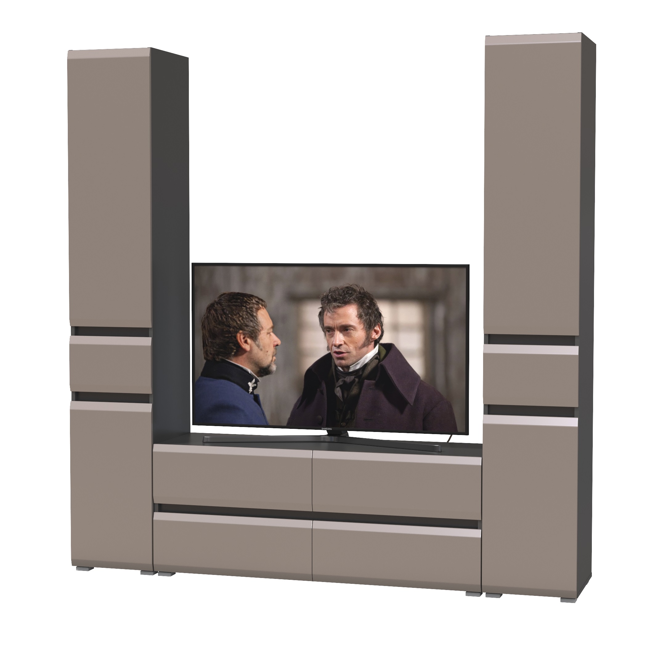 Комплектация состоит из тумбы под ТВ Сидней 13.63 и двух узких шкафов с ящиком Сидней 13.202.