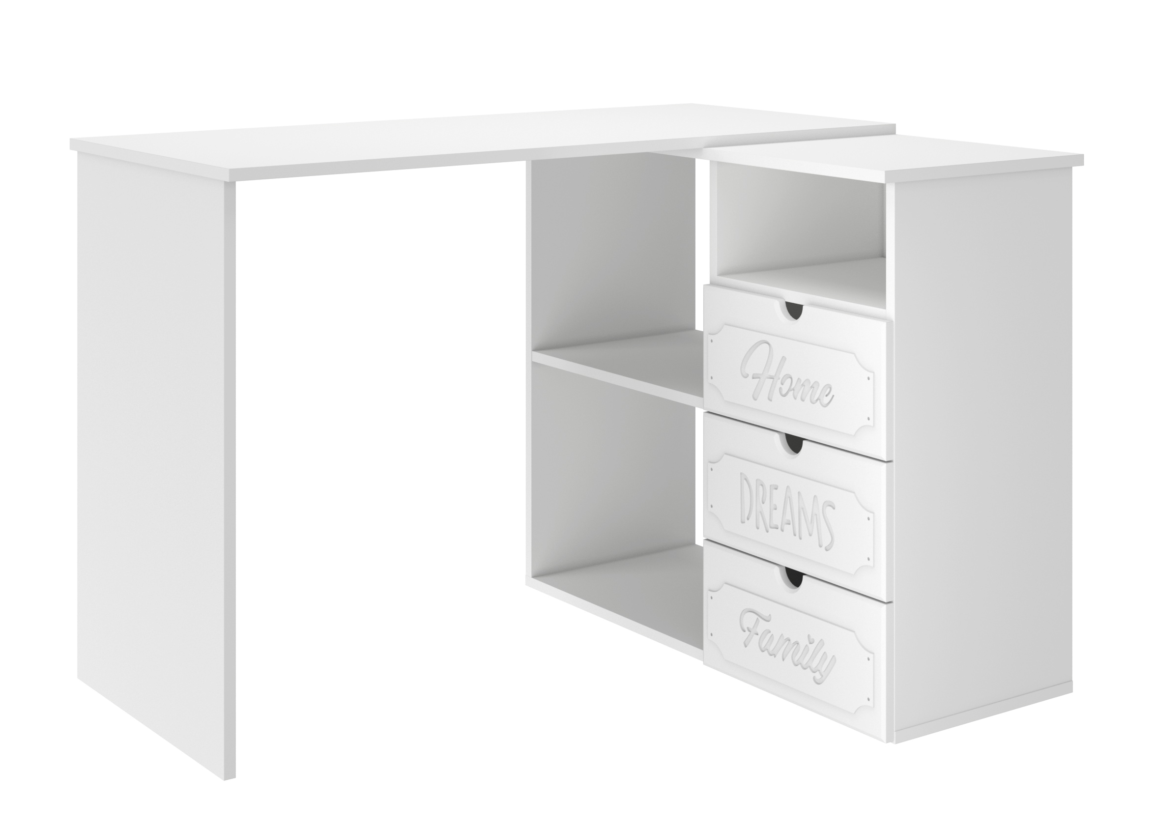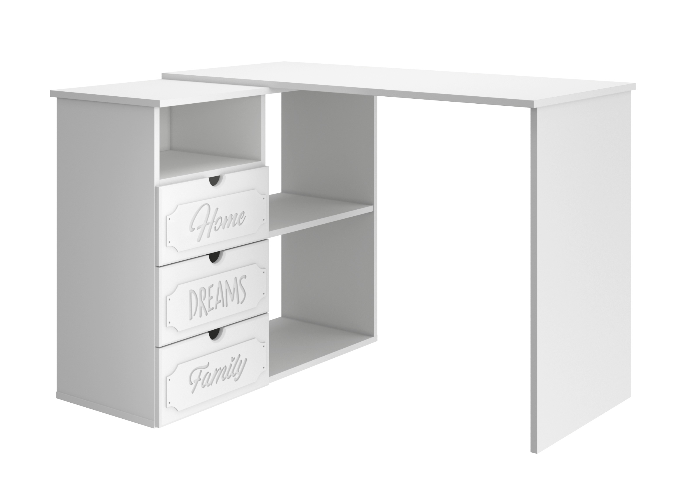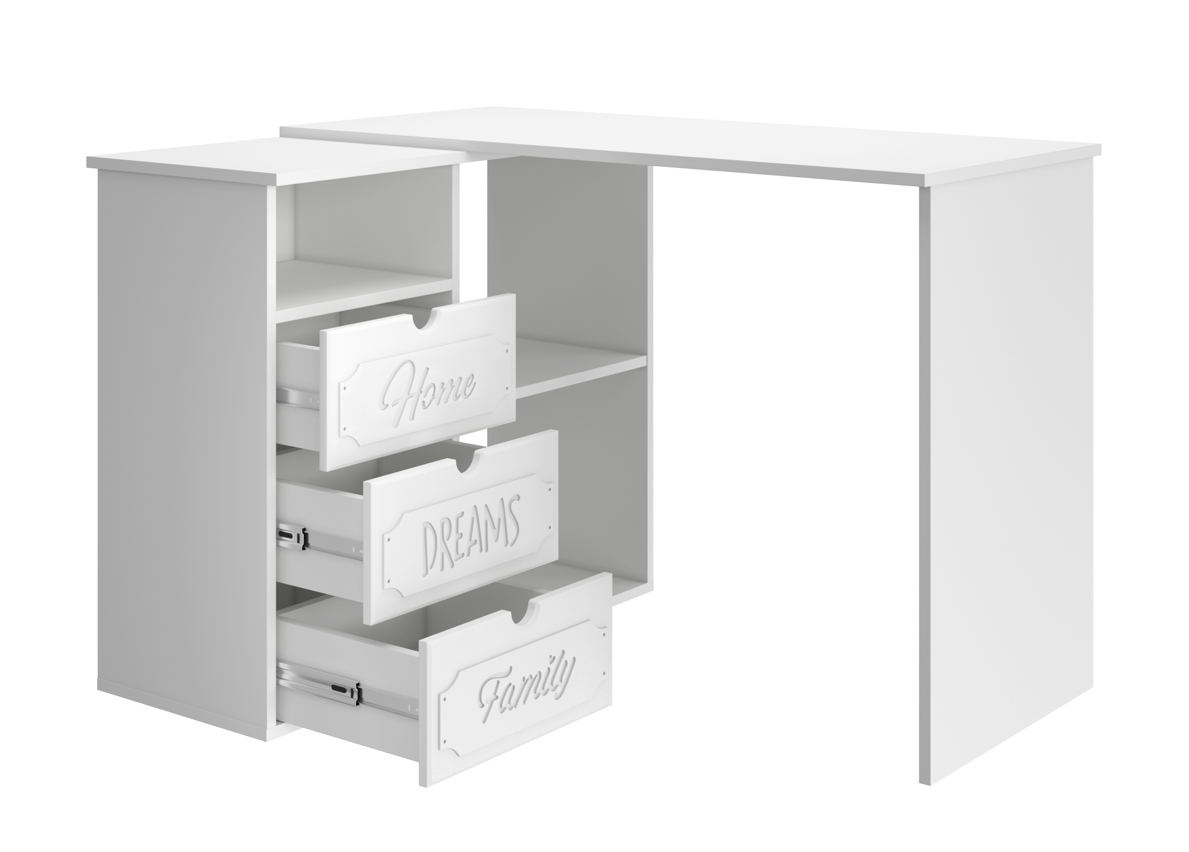Угловой стол ДримСтар ДС-5 станет отличным местом для работы. Стол оснащен тумбой с тремя выдвижными ящиками, нишей и двум полками, где можно хранить блокнот, канцелярские принадлежности, книги и журналы. Стильный дизайн позволит разместить в любом современной интерьере. Модуль может быть собран в зеркальном варианте "правым" или "левым". Фурнитура: телескопические направляющие полного выдвижения.