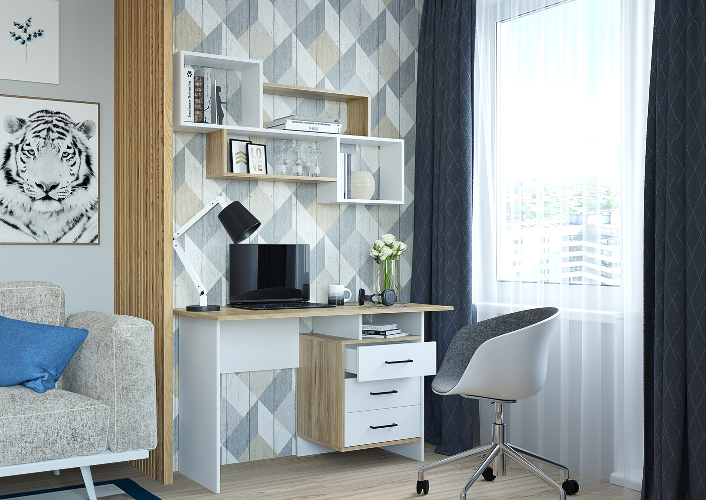 Стол можно доукомплектовать навесной полкой "Лайт" (ШхВхГ: 1200х800х195 мм), которую вы также можете приобрести в нашем интернет-магазине.