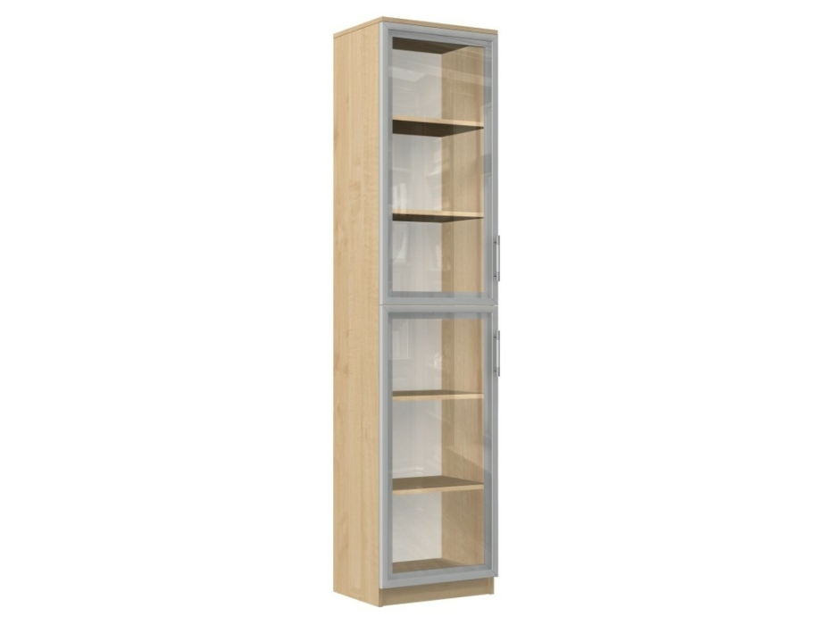 Корпус и полки изготовлены из ЛДСП 16 мм с кромкой 0.4 ПВХ. Фасады изготовлены из рамки МДФ (профиль №51) со вставкой из стекла 4мм. Направляющие для ящиков роликовые. Ручки рейлинг пластик С15 96мм. Петли металл боярд без доводчиков.