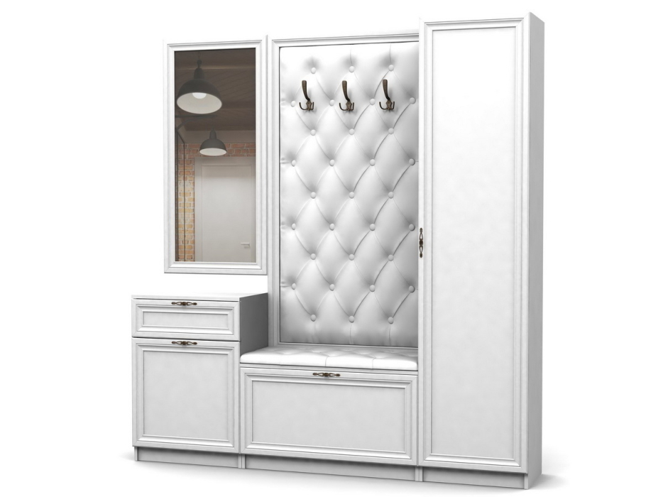 Комплектация (ш*в*г*): тумба (500*800*400); зеркало Грация 2 (500*1200*20); панно (800*1600*20); обувница Грация 1 (800*500*400); шкаф Грация 1 (450*2100*400; 4 полки).