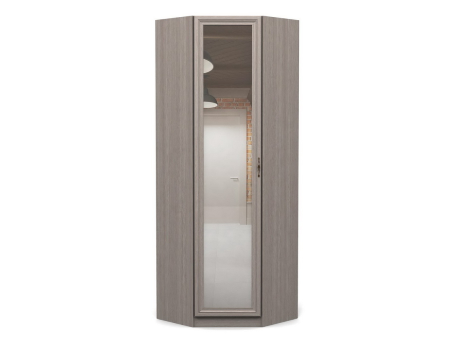 Корпус и полки изготовлены из ЛДСП 16 мм с кромкой 0.4 ПВХ. Фасад изготовлен из фигурной рамки МДФ со вставкой из зеркала 4мм. Ручка мебельная кнопка старинная латунь (бронза). Петли металл боярд без доводчиков. Наполнение - платье.