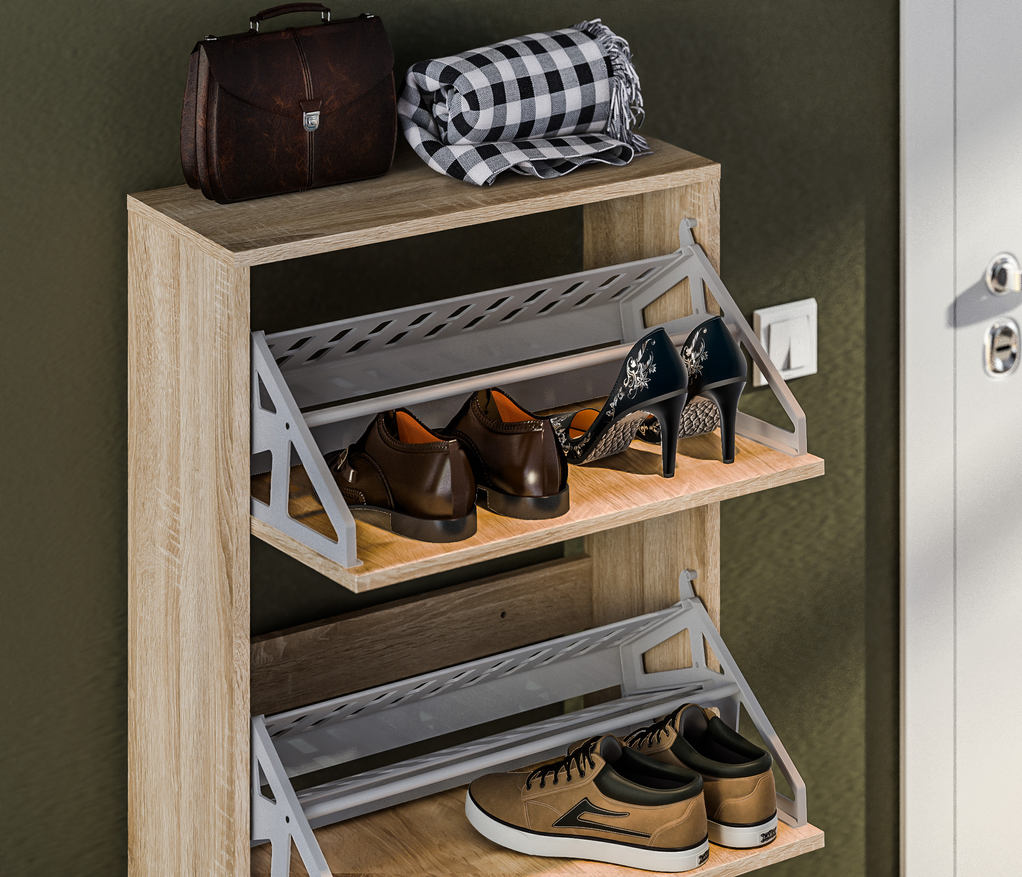 Обувница хорошего качества, пришла быстро. Собирали сами, управились за 2 часа. По размерам встала идеально, сверху повесили зеркало - смотрится отлично. По функционалу претензий нет. В целом ожидания оправдались, мы довольны. Рекомендуем к покупке.