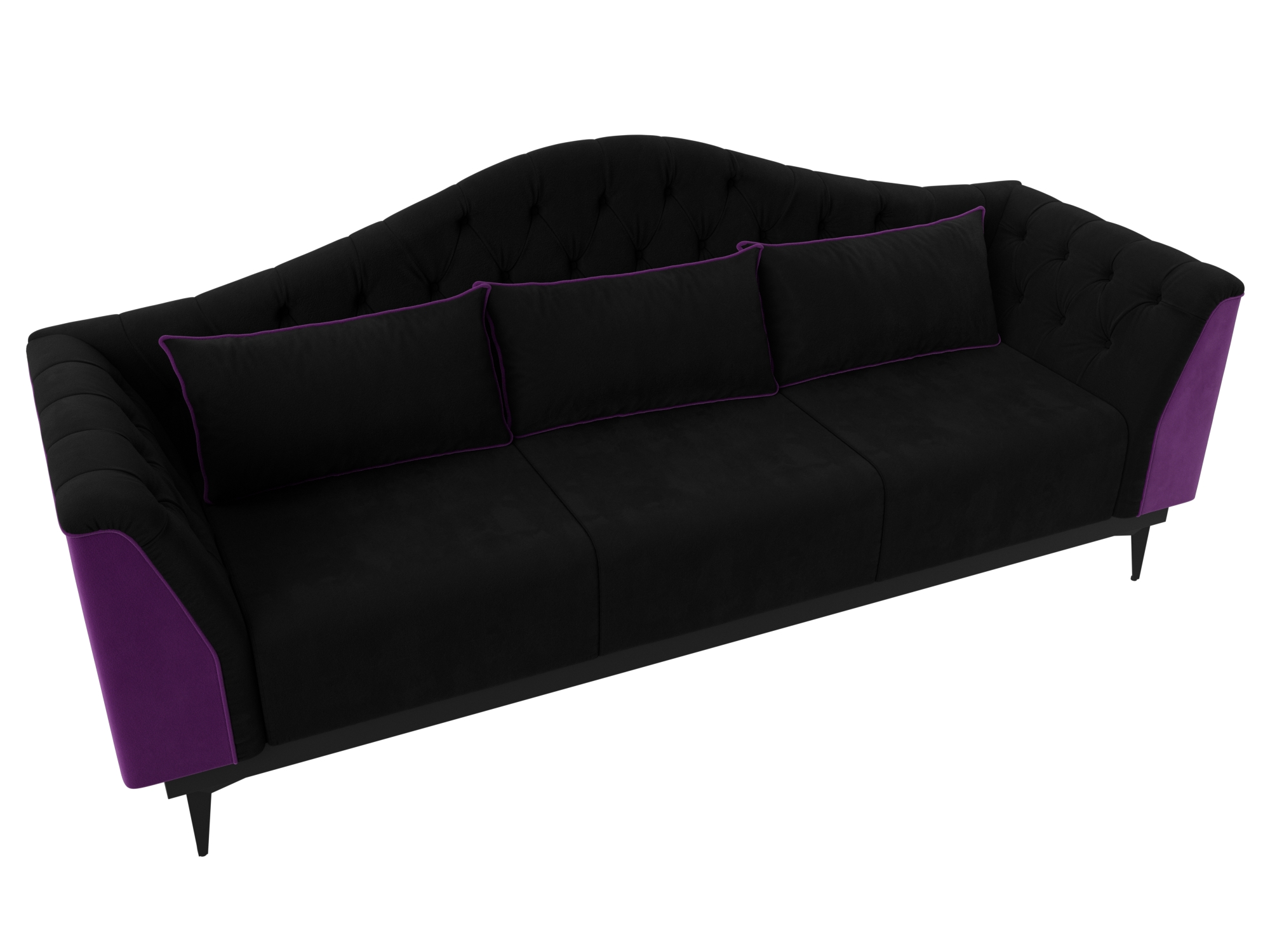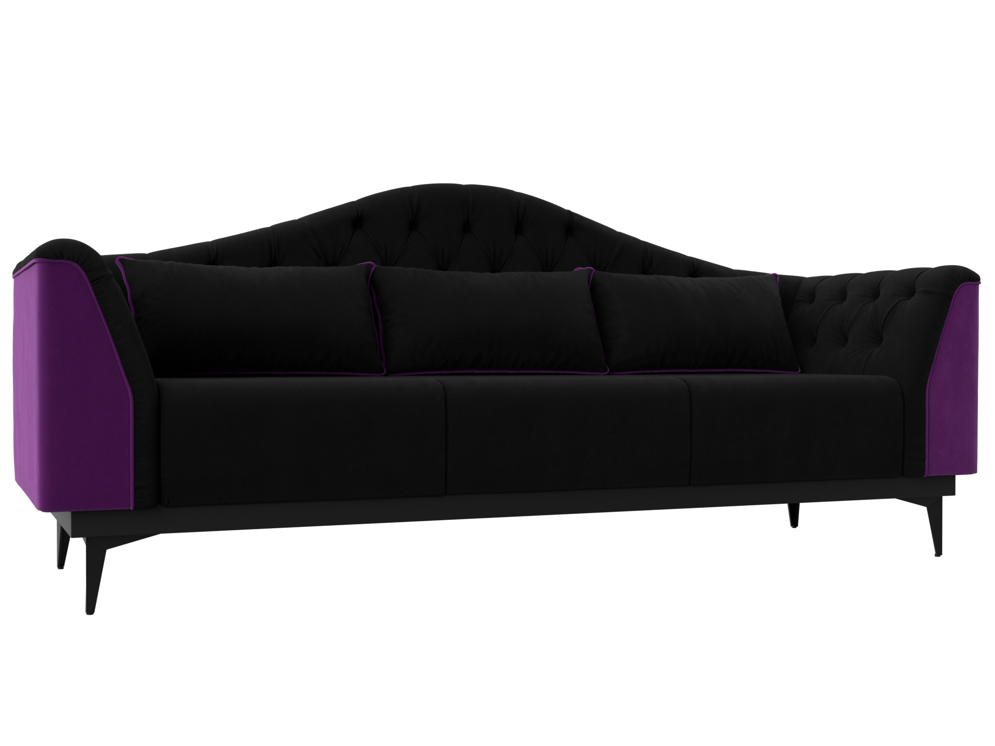 Прямой диван Флорида, Микровельвет (Черный/Фиолетовый)