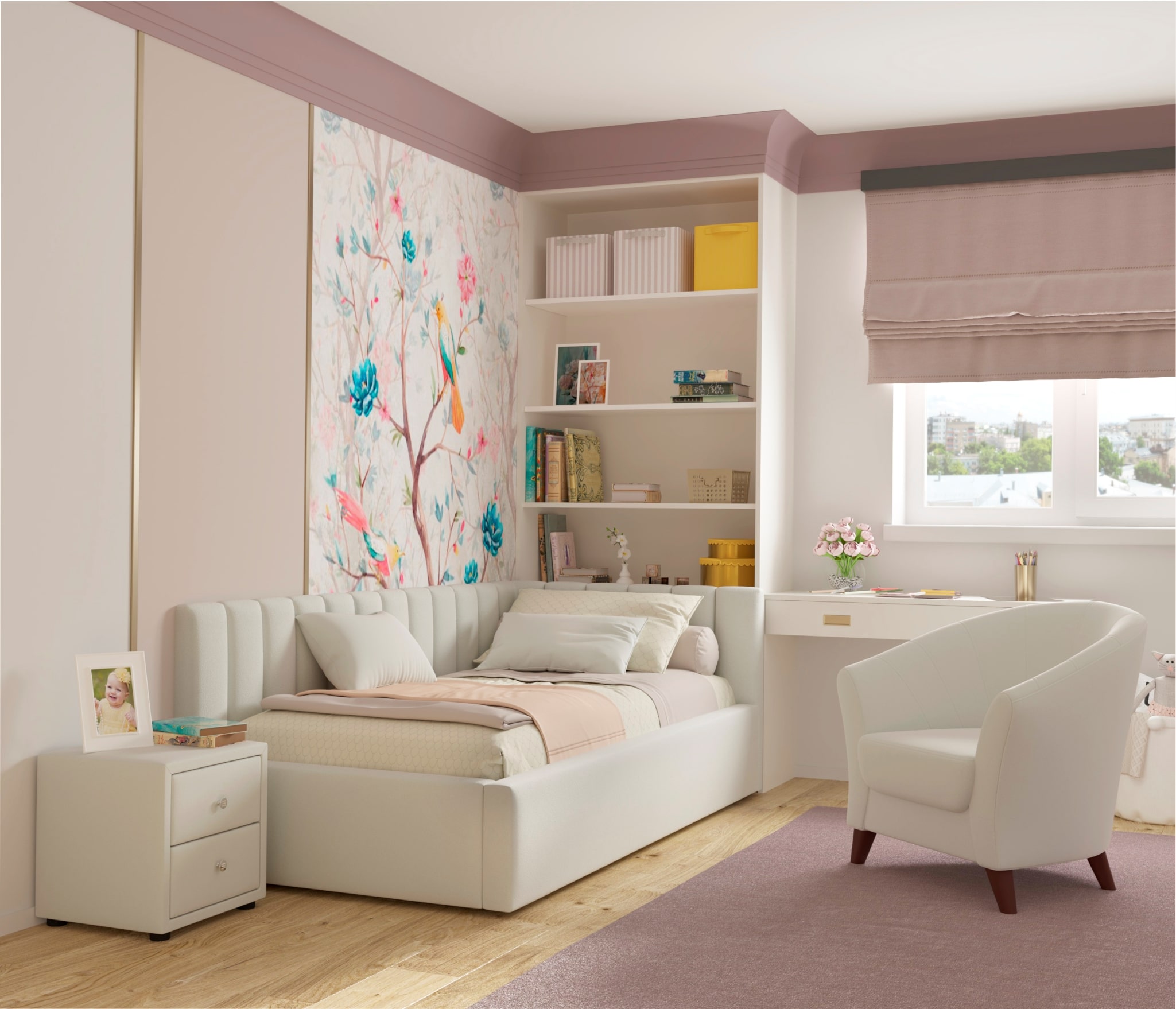 • Интерьерная кровать-тахта Milena (Милена) 90х200 оборудована удобным подъемным механизмом.