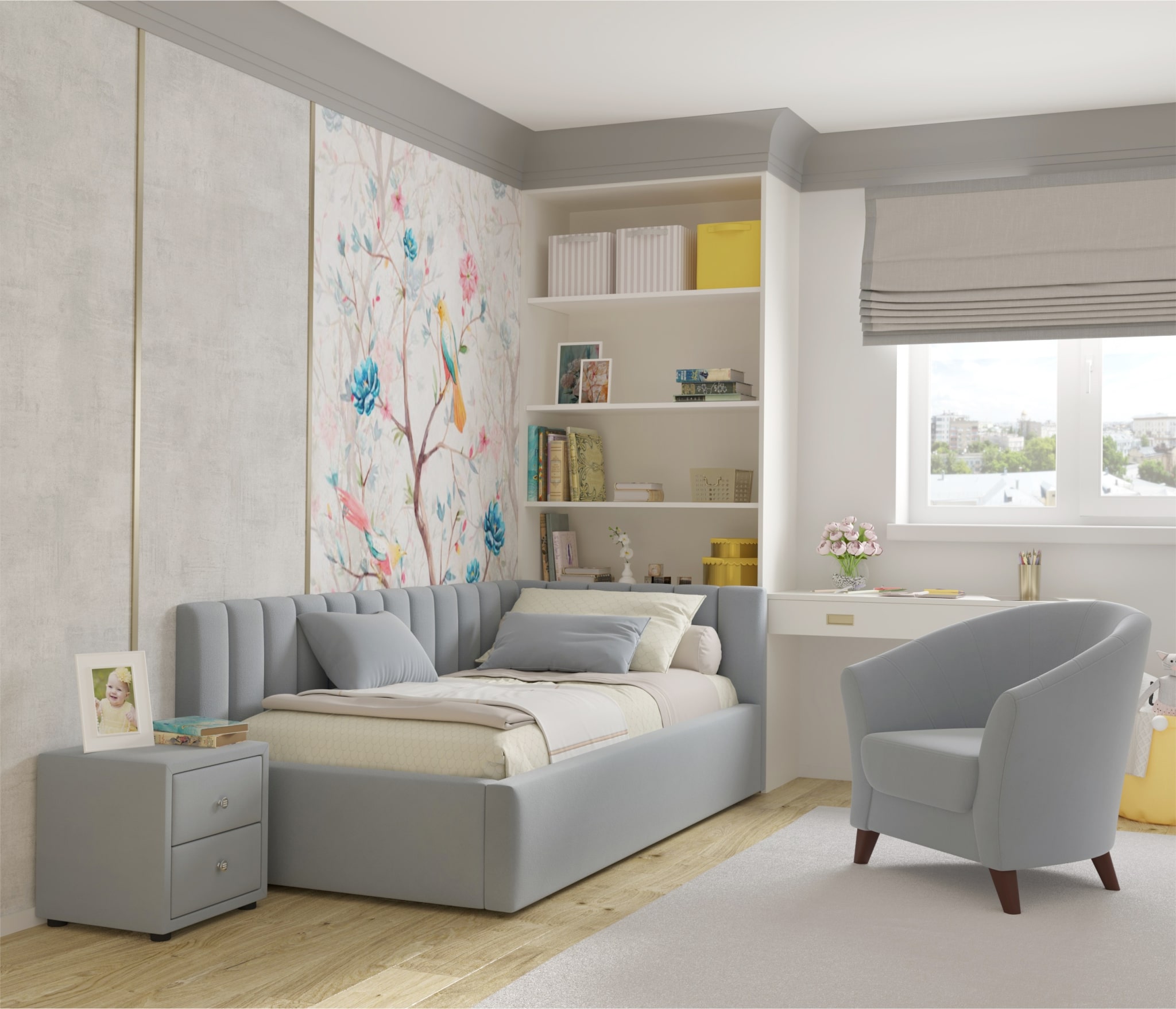 Интерьерная кровать-тахта Milena (Милена) 90х200 оборудована удобным подъемным механизмом.