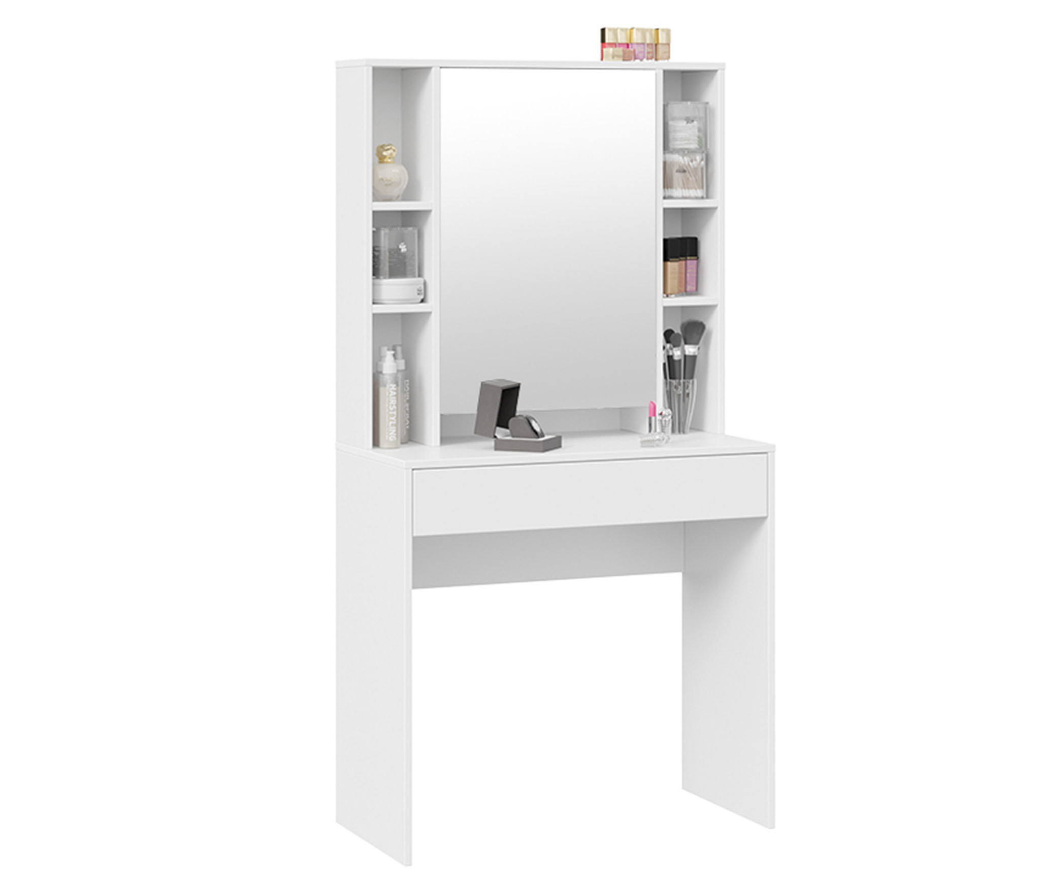 Очень удобный стол. За зеркалом две полки.