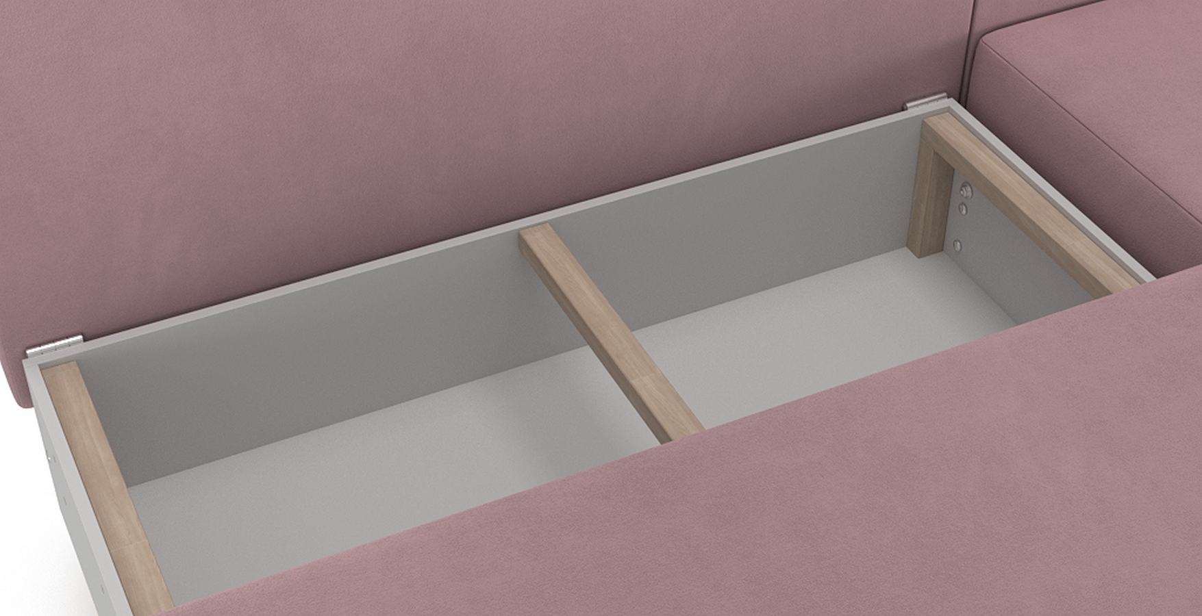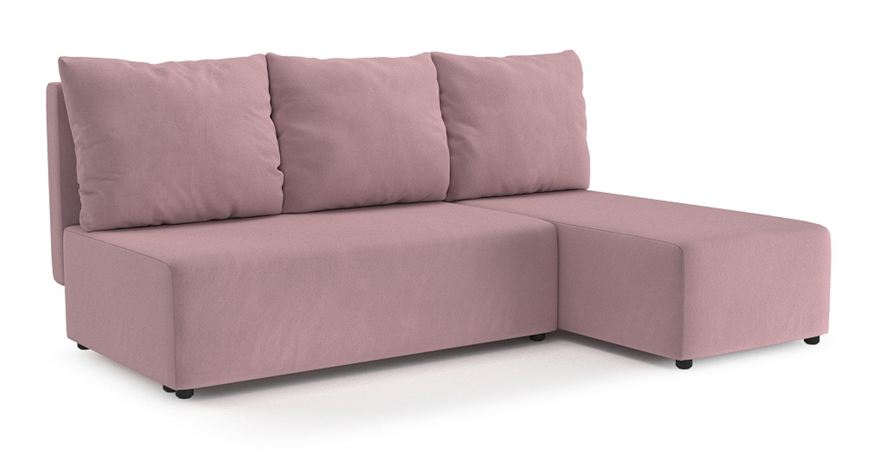 Удобный угловой диван, приятная велюровая обивка, есть ящик для хранения белья, что большой плюс, тем более, он довольно объемный. Спальное место просторное, очень удлобно, к покупке советую.