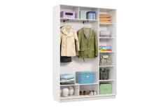 Один фасад выполнен из ЛДСП с разъединительным профилем, а другой – зеркало с разъединительным профилем. Используется выдвижная штанга для одежды.
