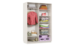 Один фасад выполнен из ЛДСП с разъединительным профилем, а другой – зеркало с разъединительным профилем. Используется выдвижная штанга для одежды.