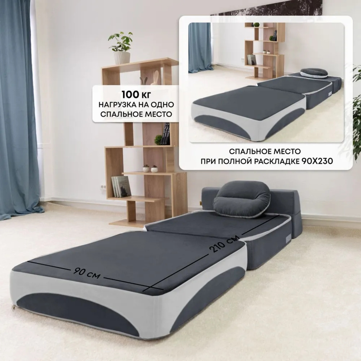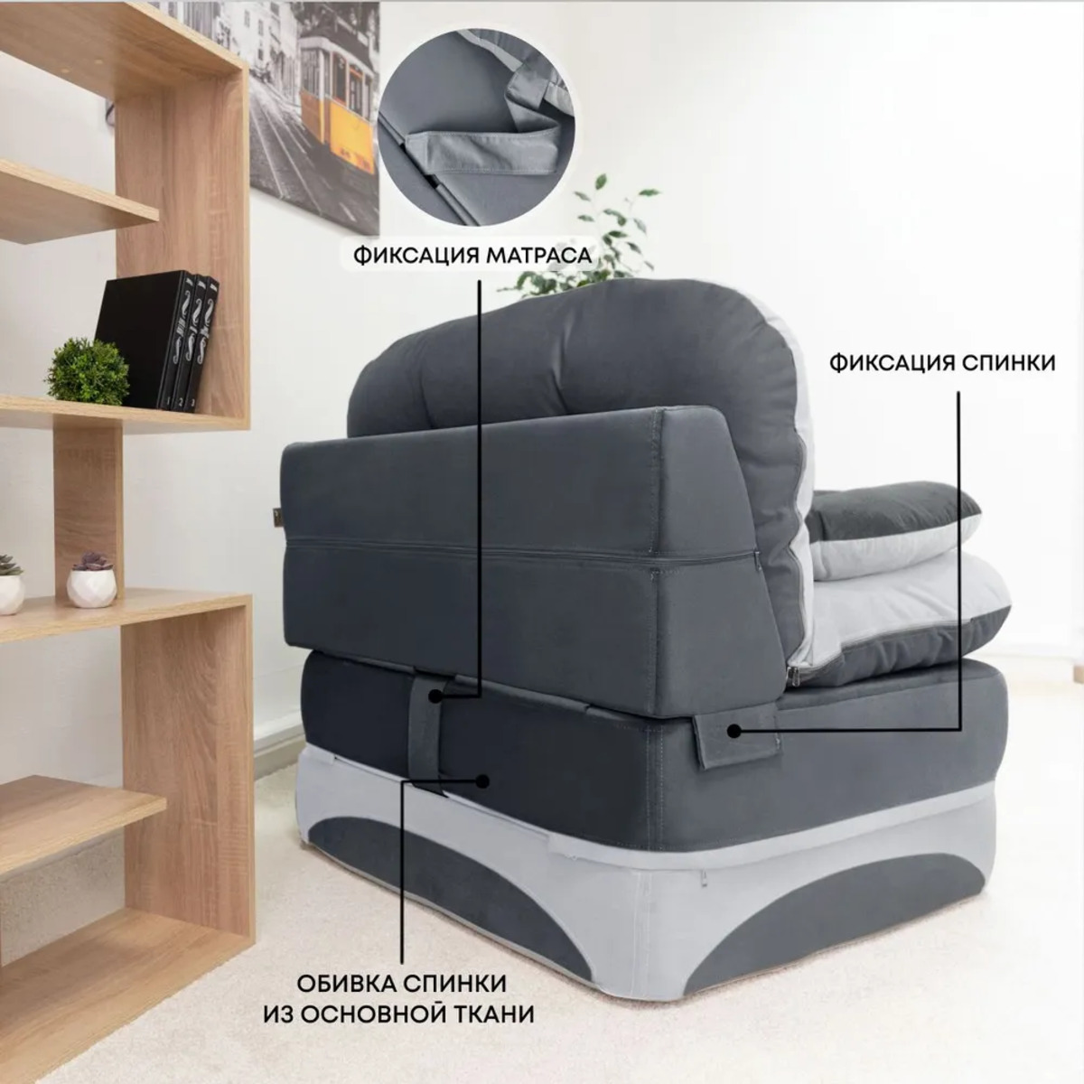 Бескаркасное кресло-кровать Клиффорд 900*950мм велюр (Серый) Код I0000376414