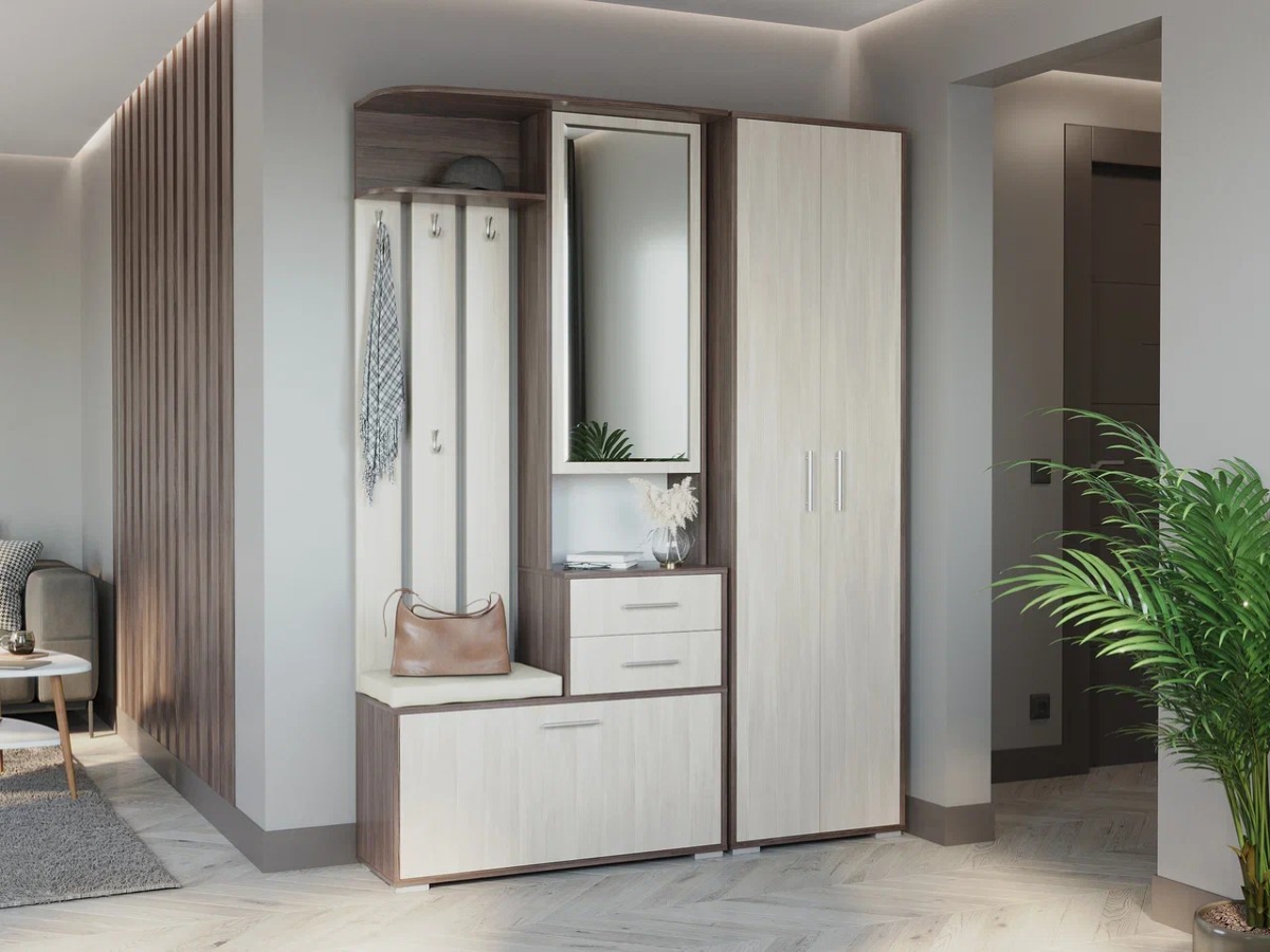 Для наибольшего комфорта прихожая дополнительно оборудована мягкими элементами.