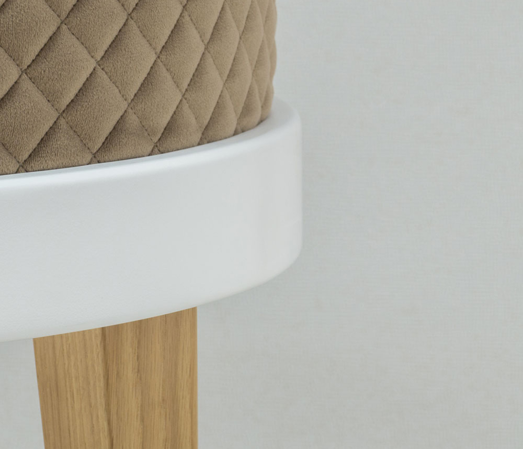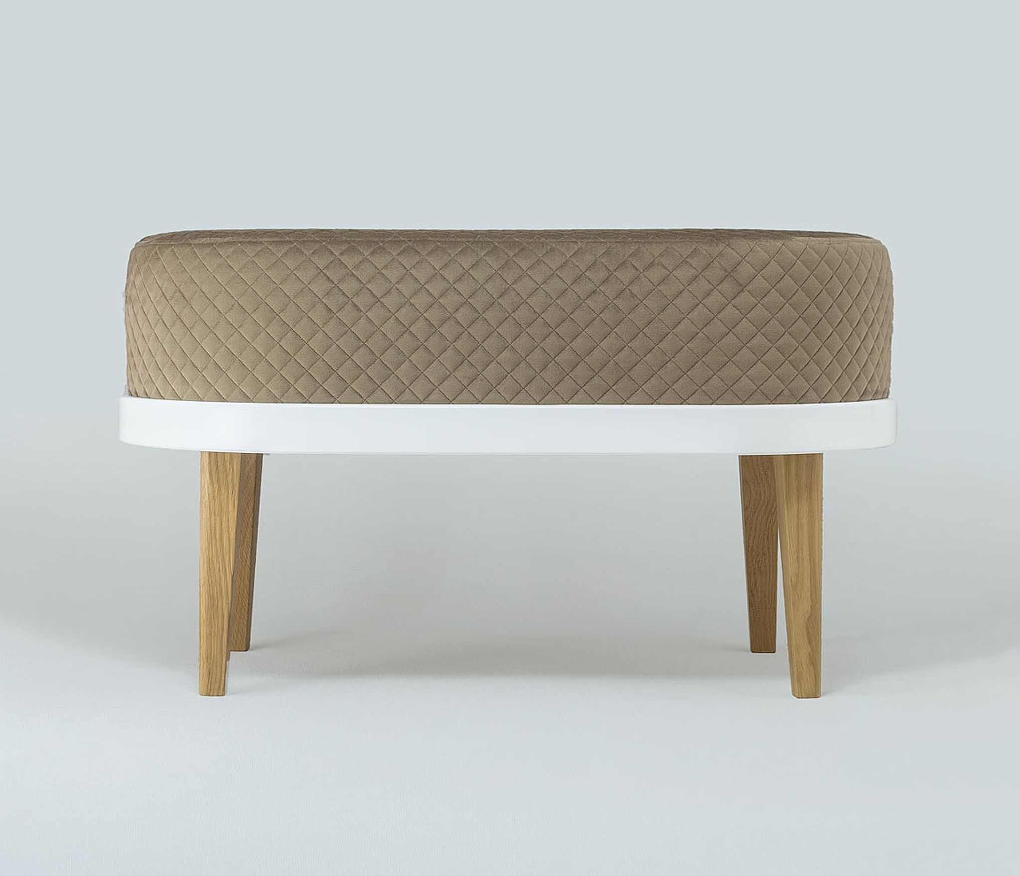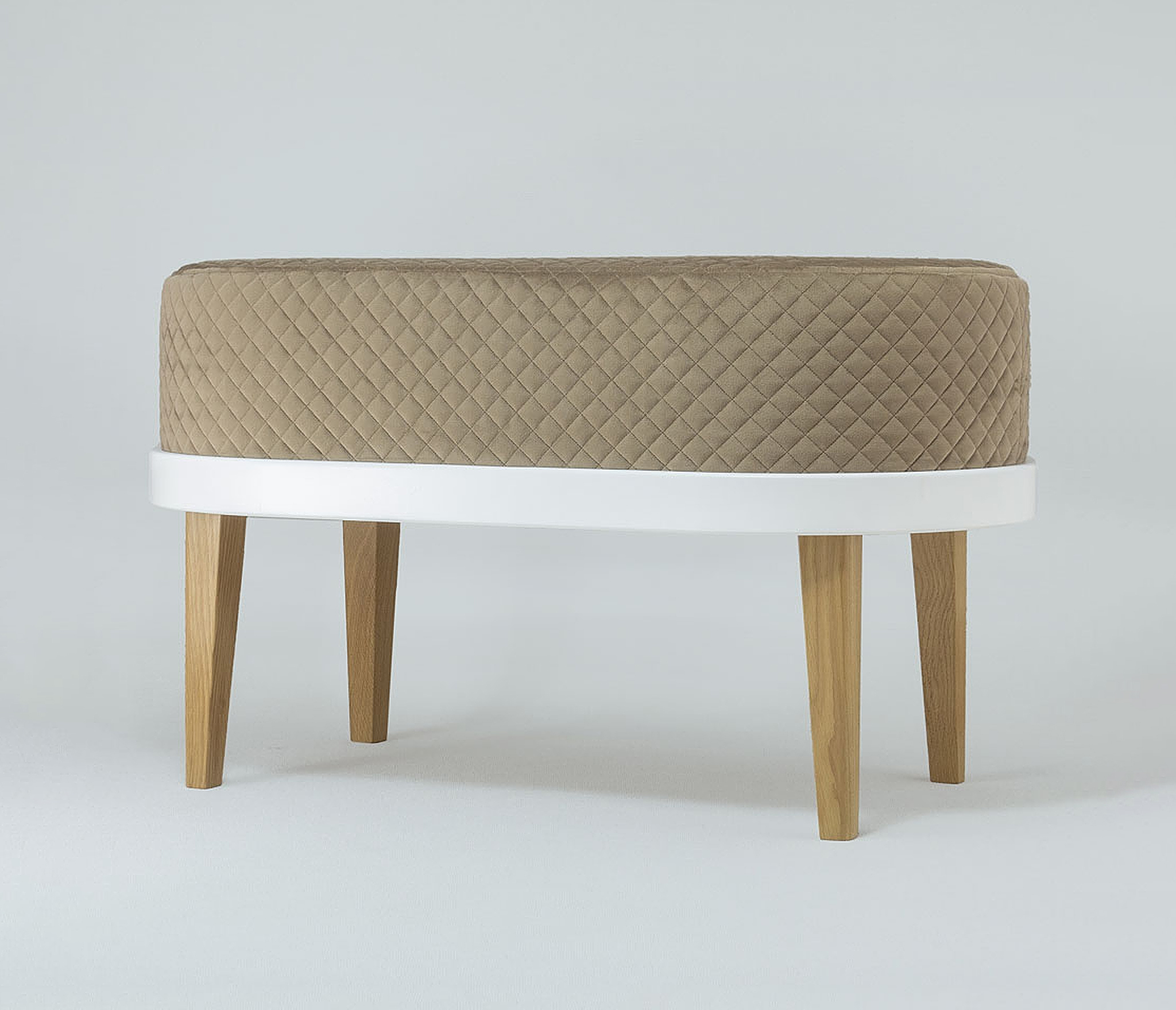 В производстве пуфов и банкеток мы используем массив дуба, натуральный дубовый шпон, мебельную фанеру, крепежные элементы из нержавеющей стали. На деревянные части нанесено экологичное покрытие: твердый масло-воск, белая матовая эмаль (производство Италия). Ткани: мебельный велюр, диагональ, бязь, синтетический наполнитель, поролон, хлопковая ткань (производство Россия).