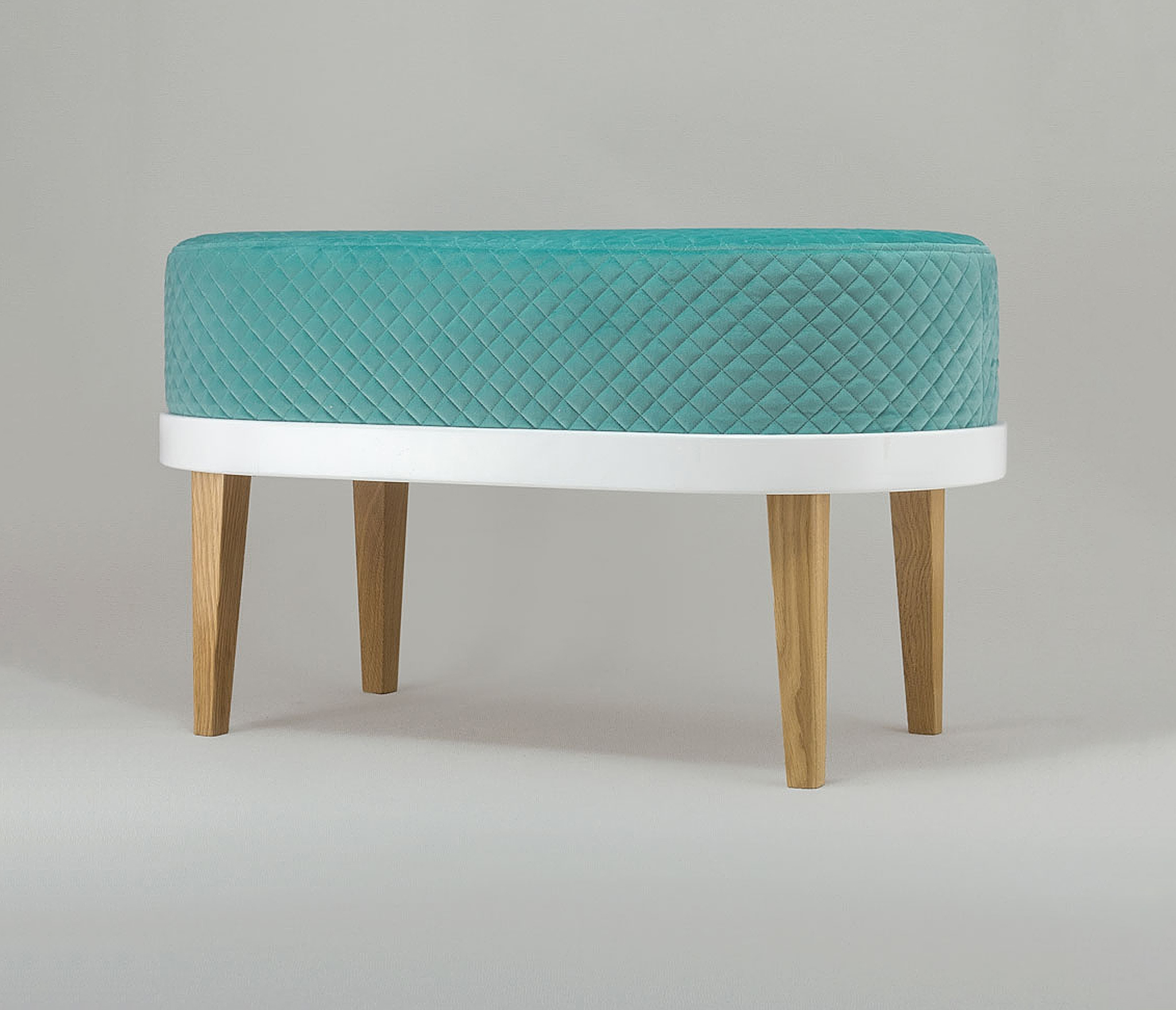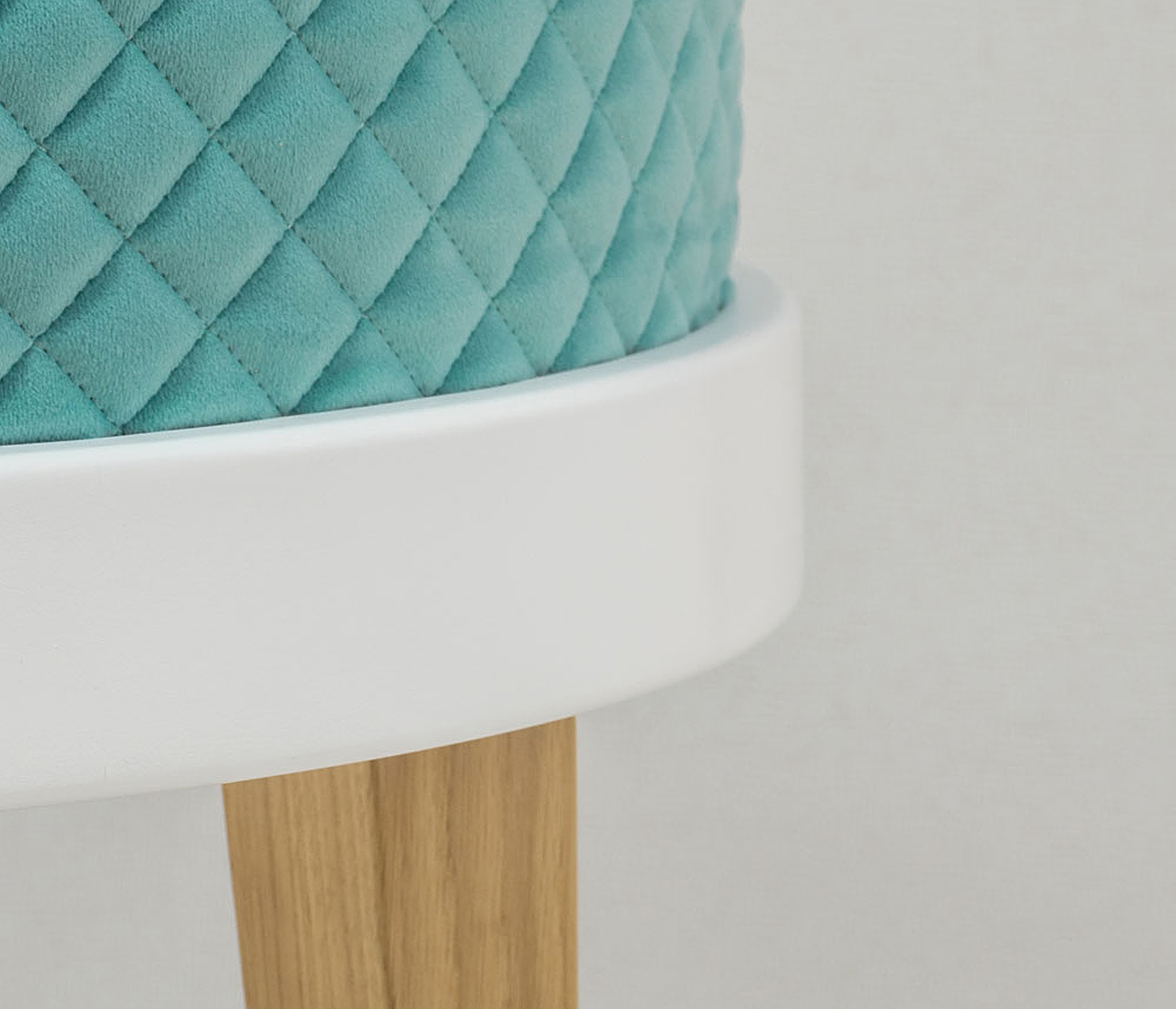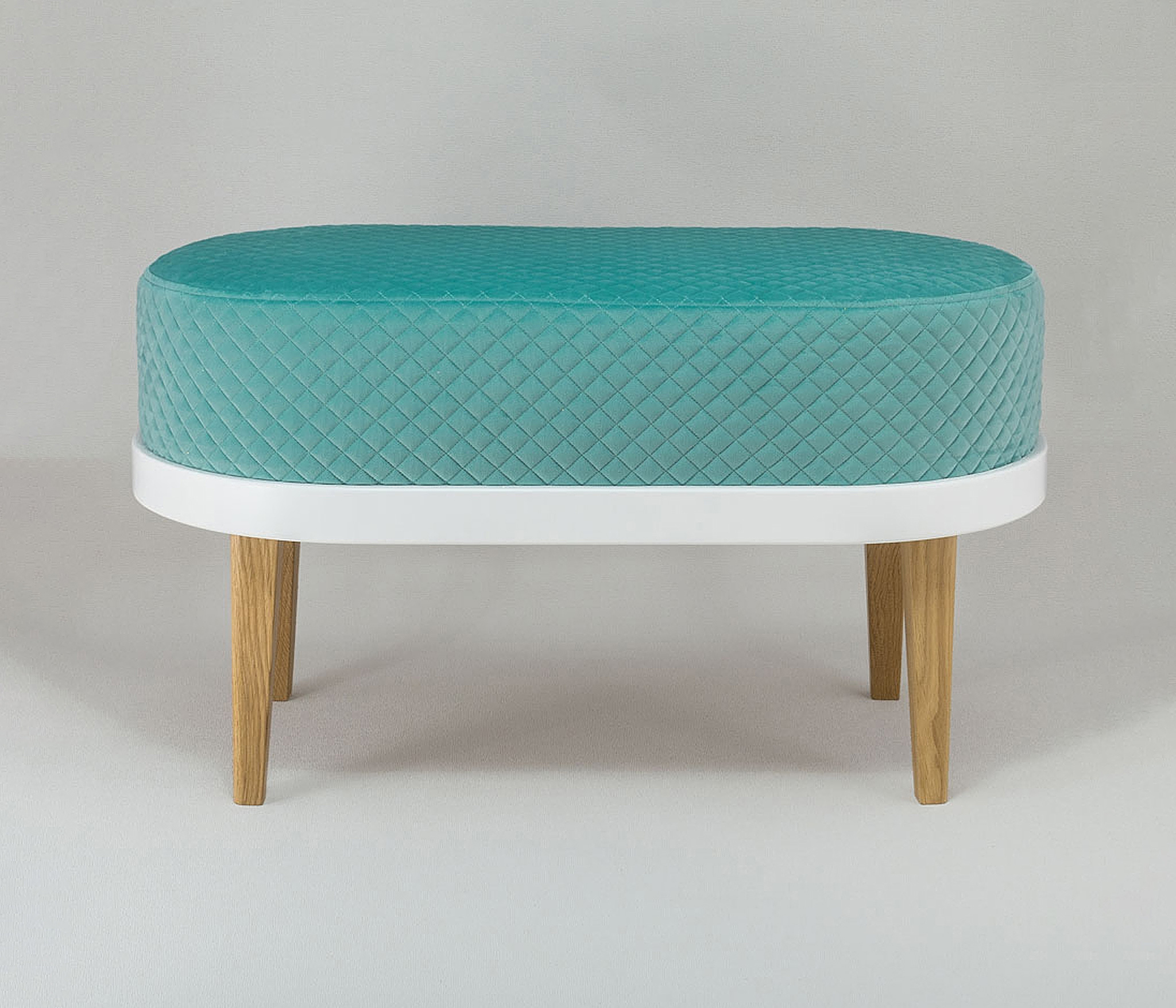 В производстве пуфов и банкеток мы используем массив дуба, натуральный дубовый шпон, мебельную фанеру, крепежные элементы из нержавеющей стали. На деревянные части нанесено экологичное покрытие: твердый масло-воск, белая матовая эмаль (производство Италия). Ткани: мебельный велюр, диагональ, бязь, синтетический наполнитель, поролон, хлопковая ткань (производство Россия).