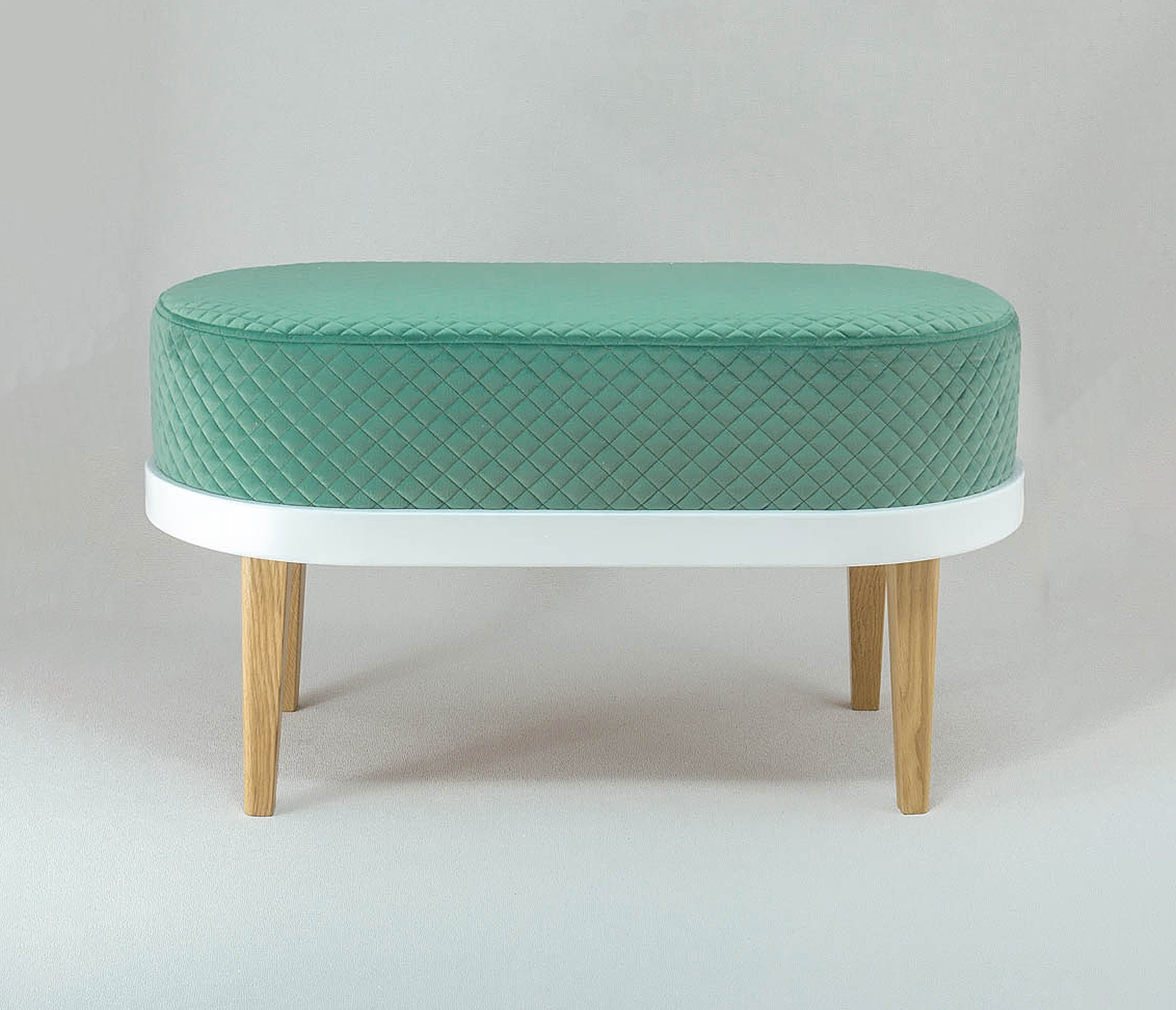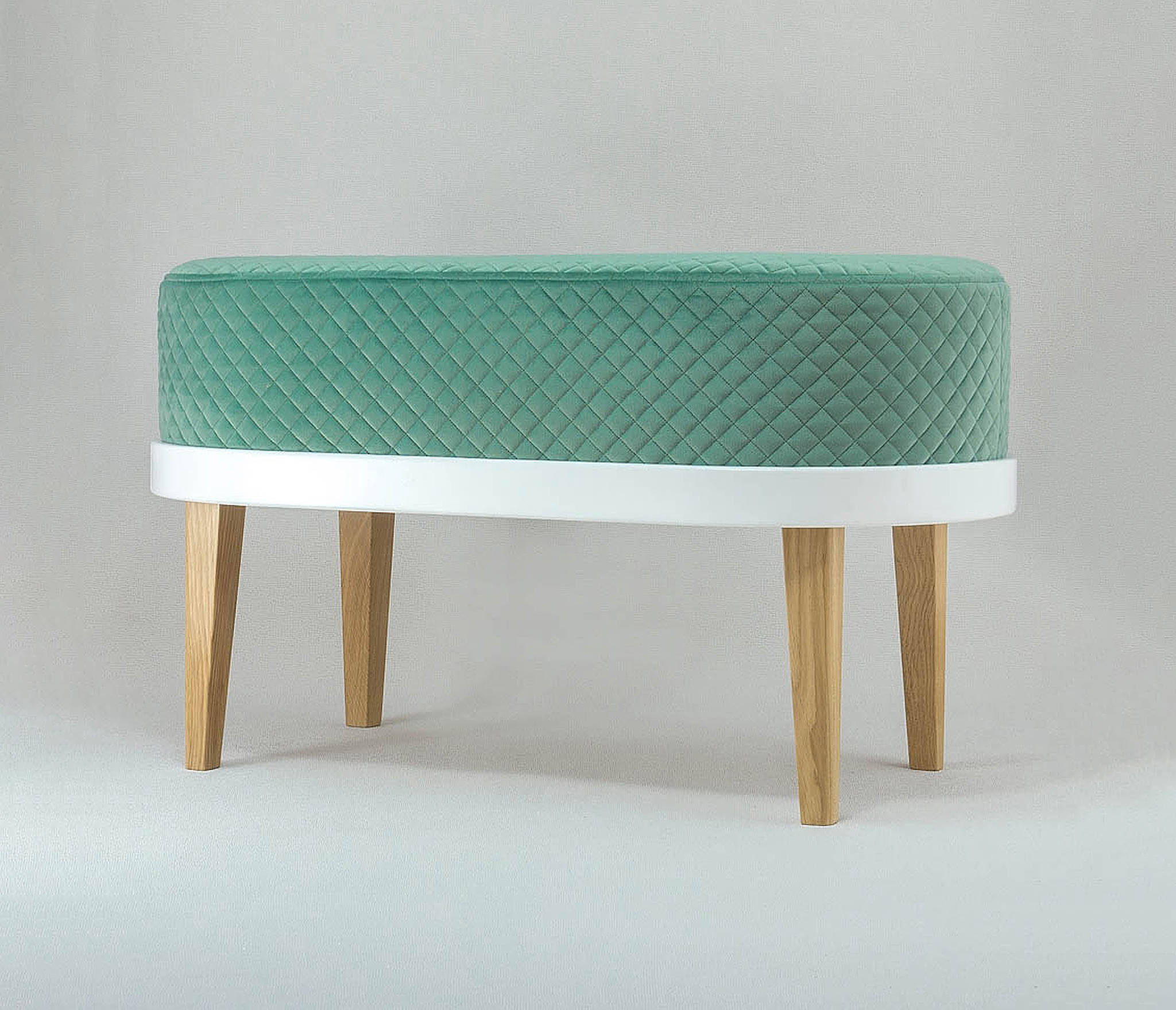 В производстве пуфов и банкеток мы используем массив дуба, натуральный дубовый шпон, мебельную фанеру, крепежные элементы из нержавеющей стали. На деревянные части нанесено экологичное покрытие: твердый масло-воск, белая матовая эмаль (производство Италия). Ткани: мебельный велюр, диагональ, бязь, синтетический наполнитель, поролон, хлопковая ткань (производство Россия).