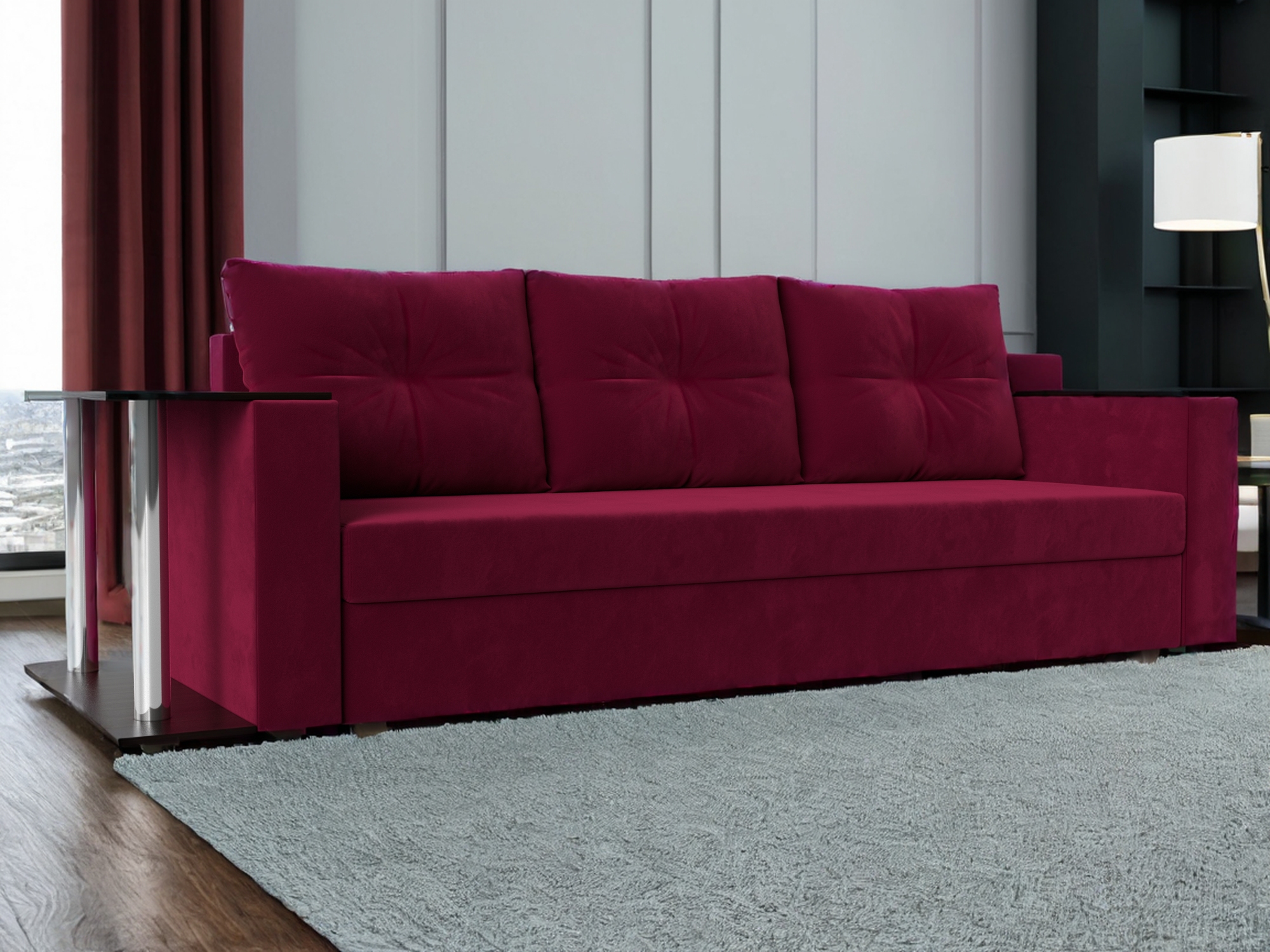Отзывы о Столплит Диван прямой Атланта со столом слева, микровельвет Бордовый