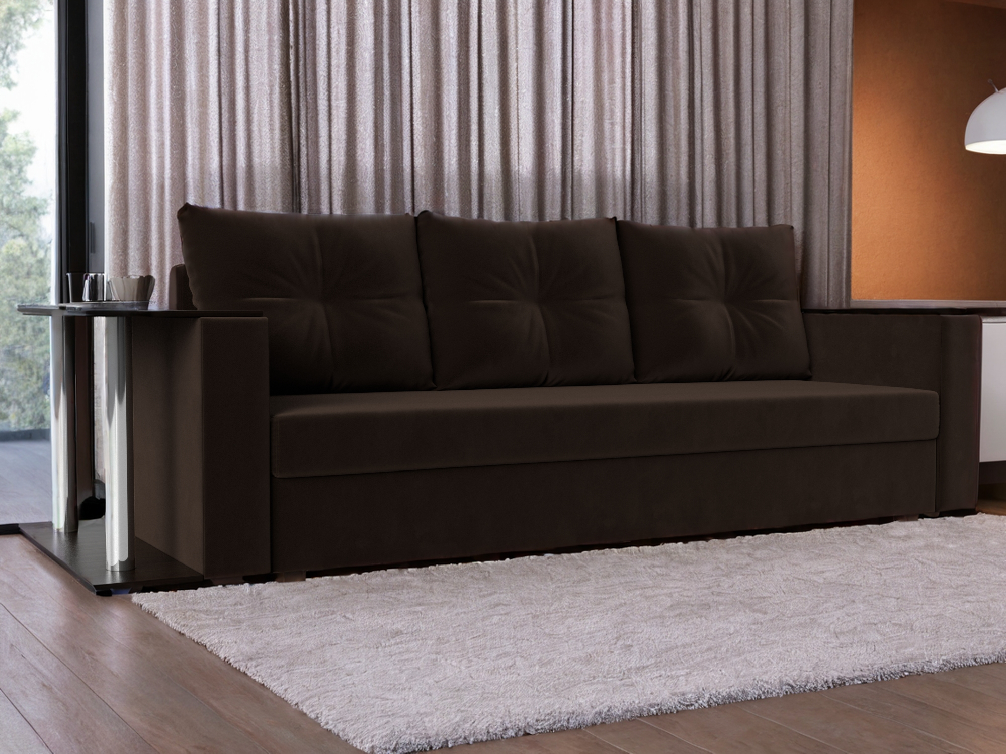 Отзывы о Столплит Диван прямой Атланта со столом слева, микровельвет Коричневый