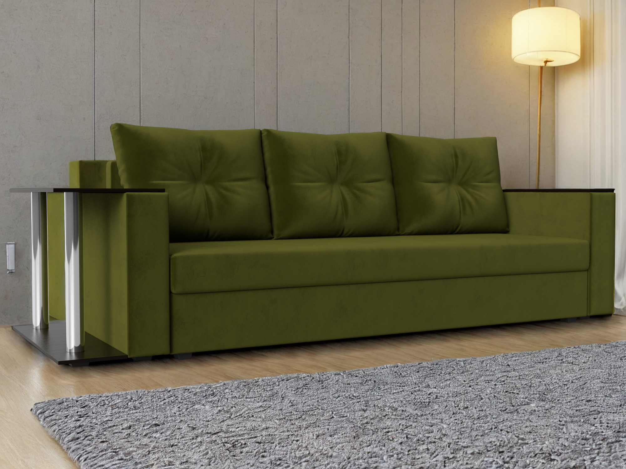 Отзывы о Столплит Диван прямой Атланта со столом слева, микровельвет Зеленый