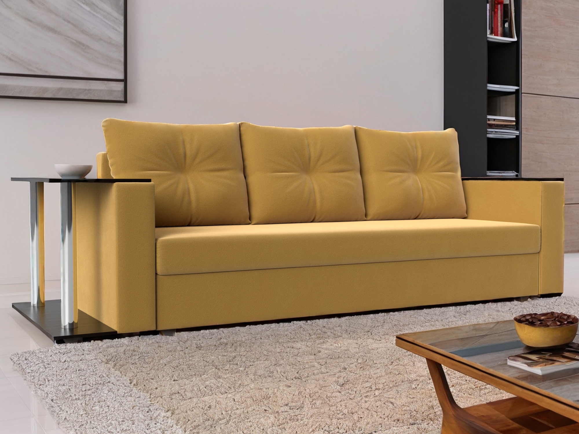 Отзывы о Столплит Диван прямой Атланта со столом слева, микровельвет Желтый