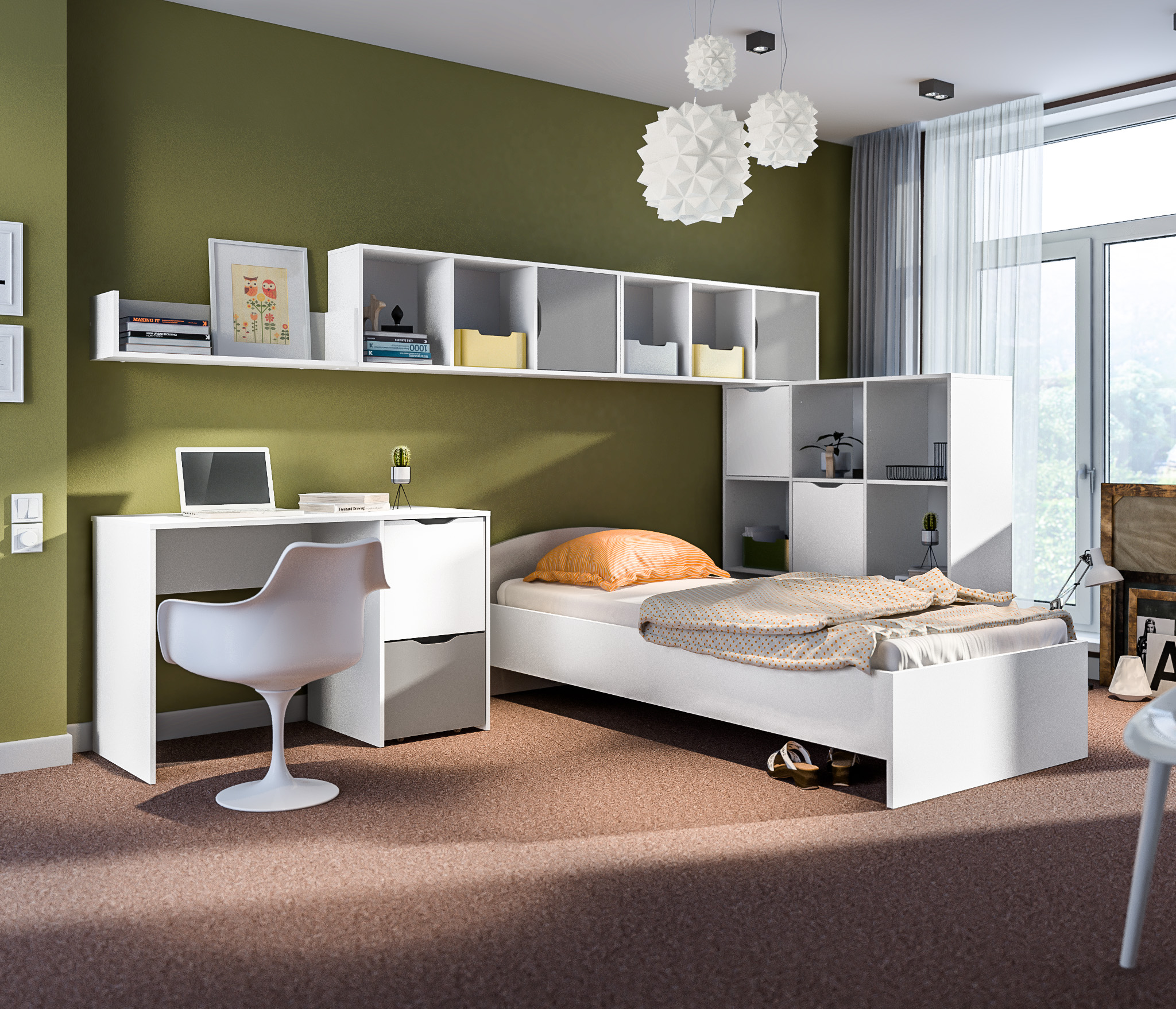 Отзывы о Столплит Mika / Мика детская Белый/Серый (кровать 900, стол, стеллаж, полки)